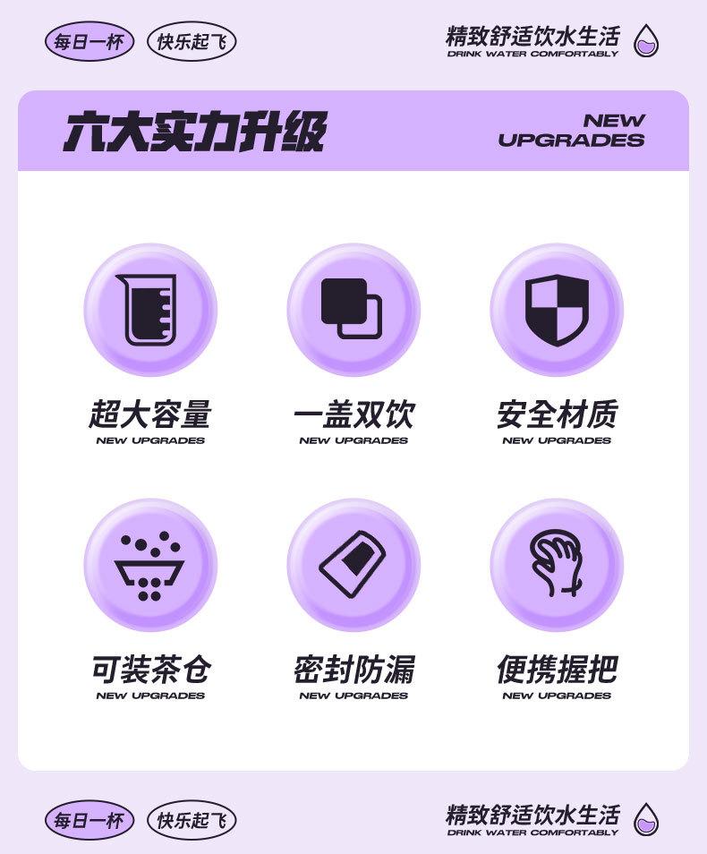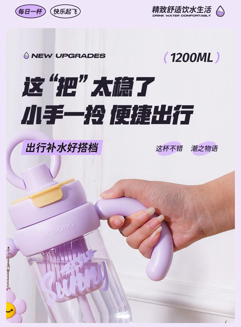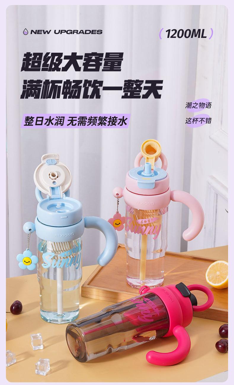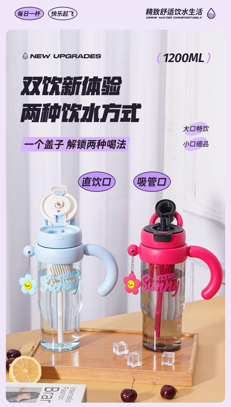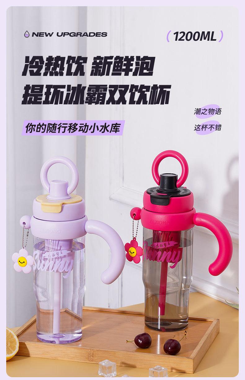 Vaso de agua Big Mac de gran capacidad, color intenso, portátil, para deportes al aire libre, resistente a altas temperaturas, plástico, con doble ventosa.