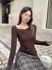 Top de punto asimétrico de moda para mujer con hombro oblicuo, manga larga corta, primavera 2025, estilo europeo y americano, suéter de manga larga con hombros descubiertos