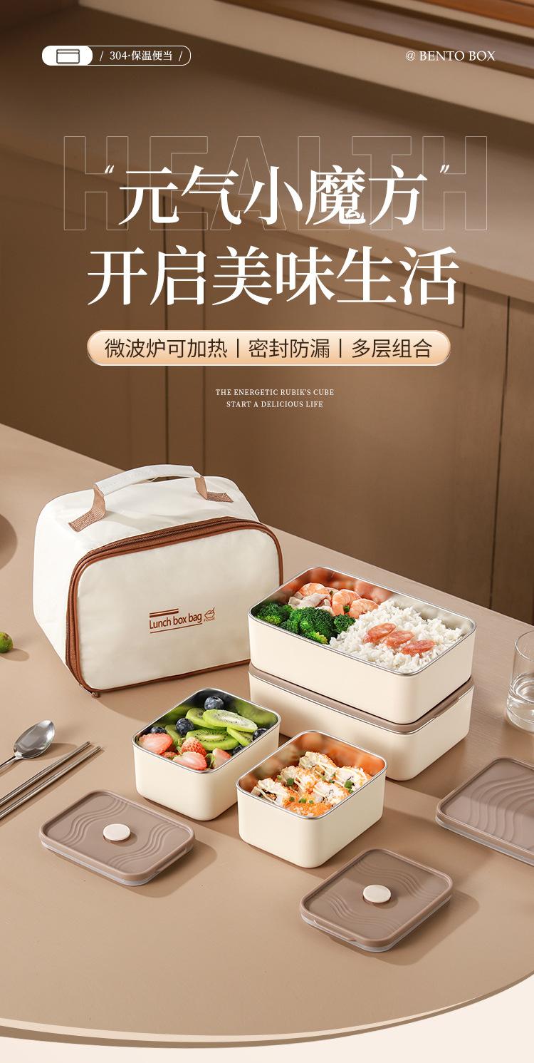 Suministro directo de fábrica, lonchera de acero inoxidable 304 para trabajadores de oficina, lonchera con calentamiento por microondas, lonchera portátil, venta al por mayor