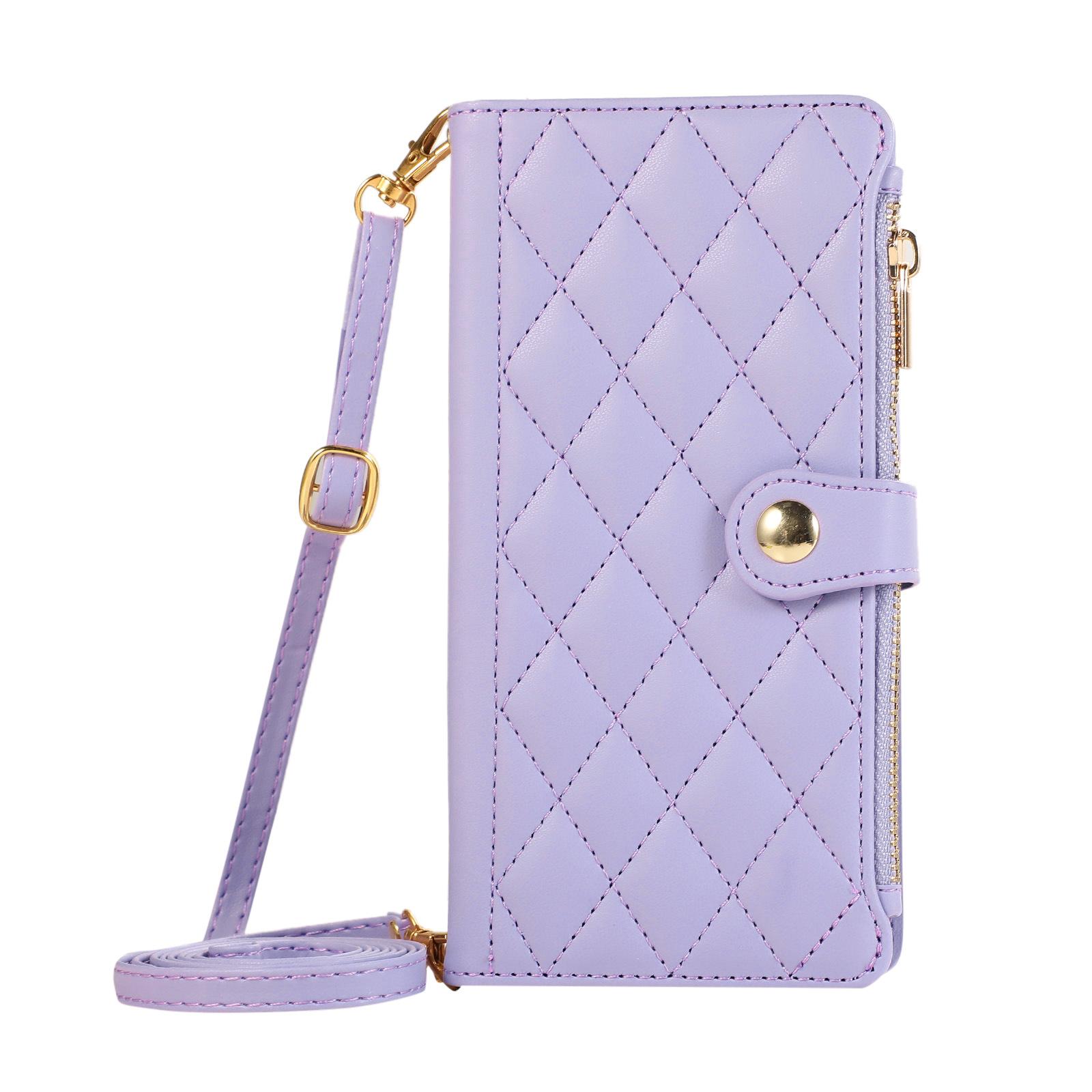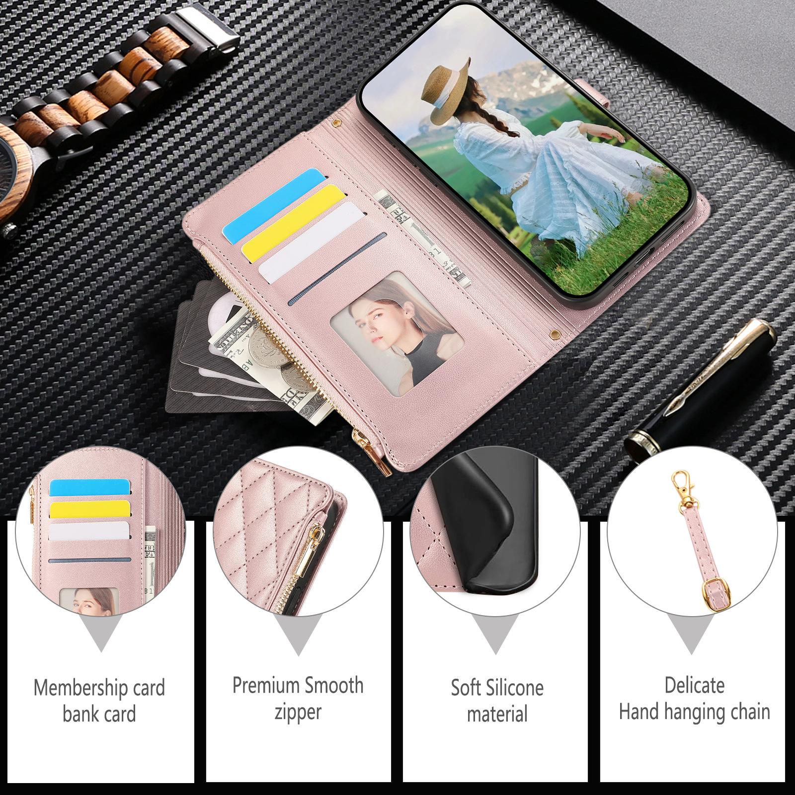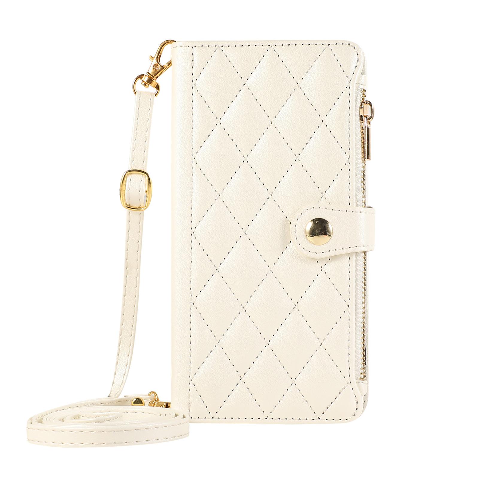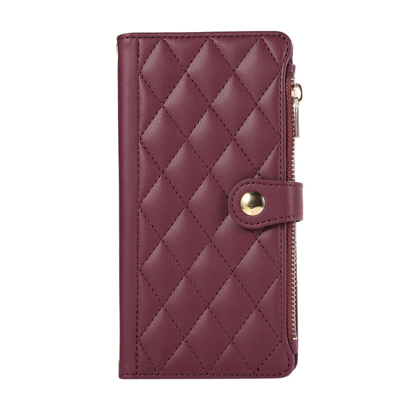 Adecuado para Funda de Cuero para Teléfono Móvil Samsung Z Fold7 Fold5 Rombo Pequeño Fragancia Billetera con Cremallera Bandolera Diagonal Cuerda