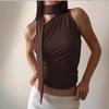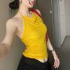 Top sexy europeo y americano nuevo con cuello de rienda sin mangas y cremallera en la espalda
