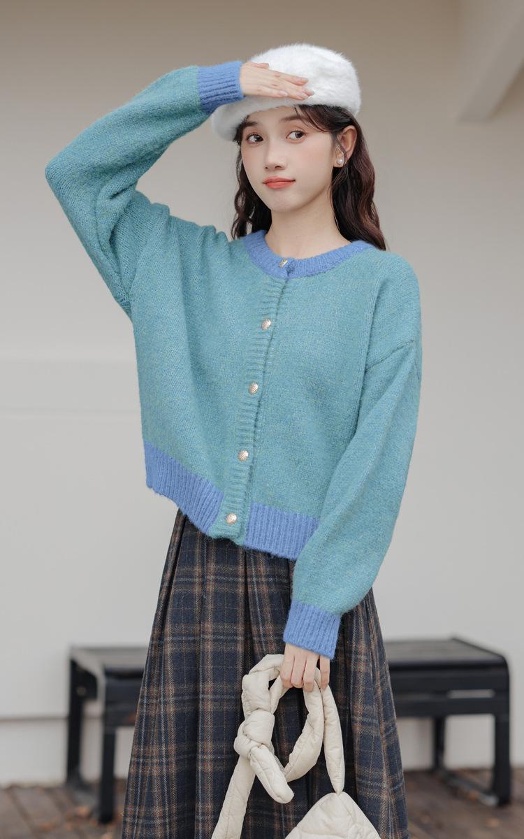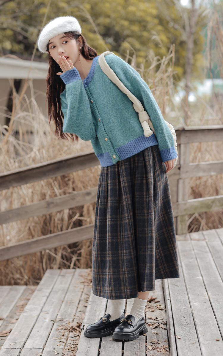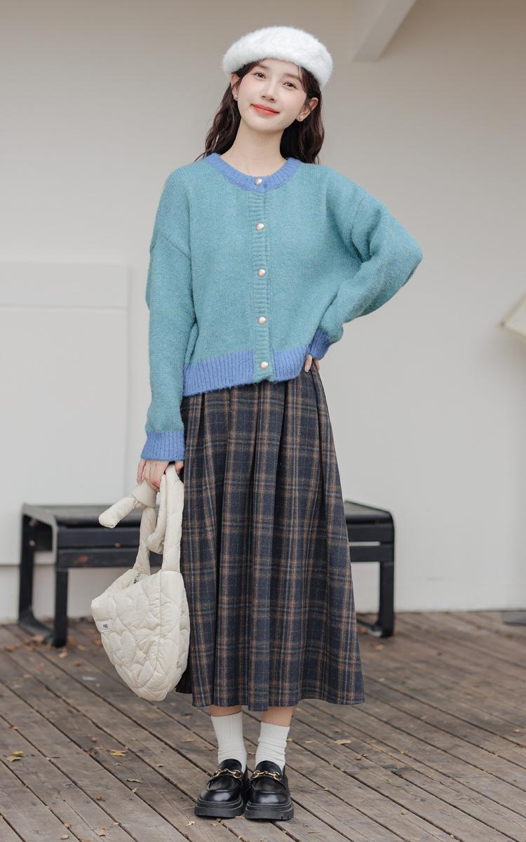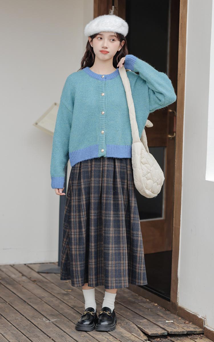 6445#Apricot cotton clothing, 6446#Blue sweater, 6441#Blue plaid skirt