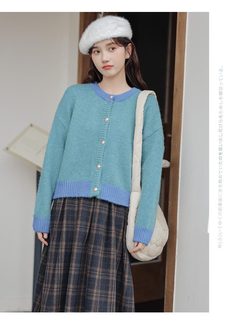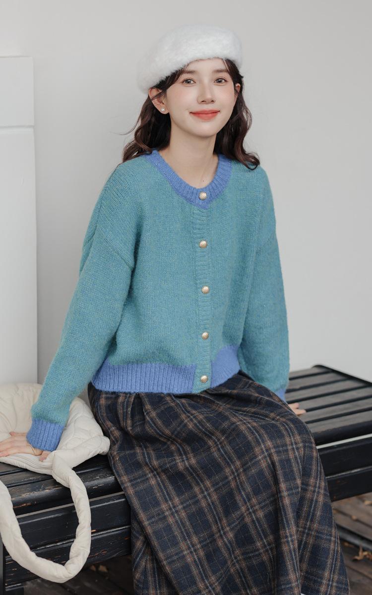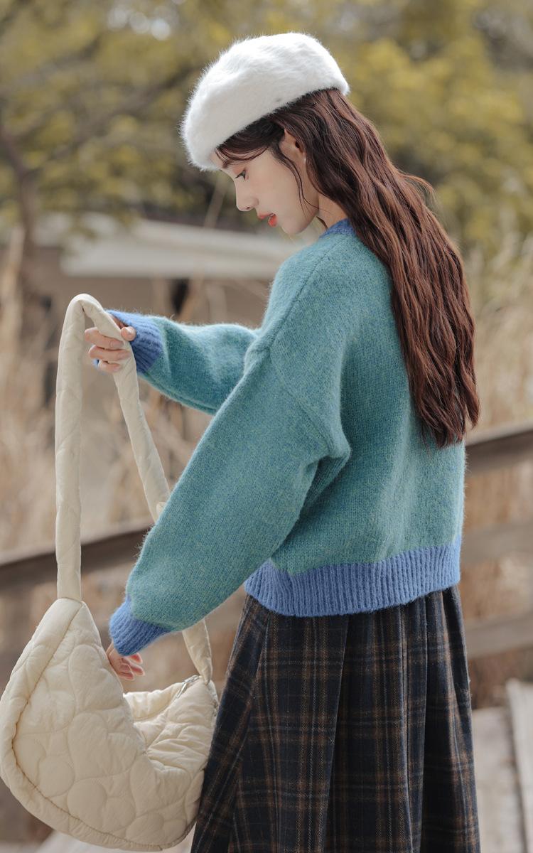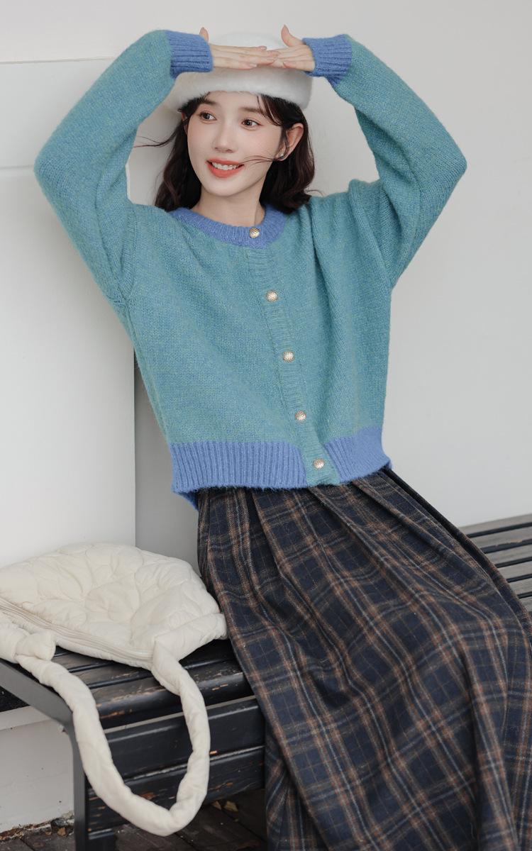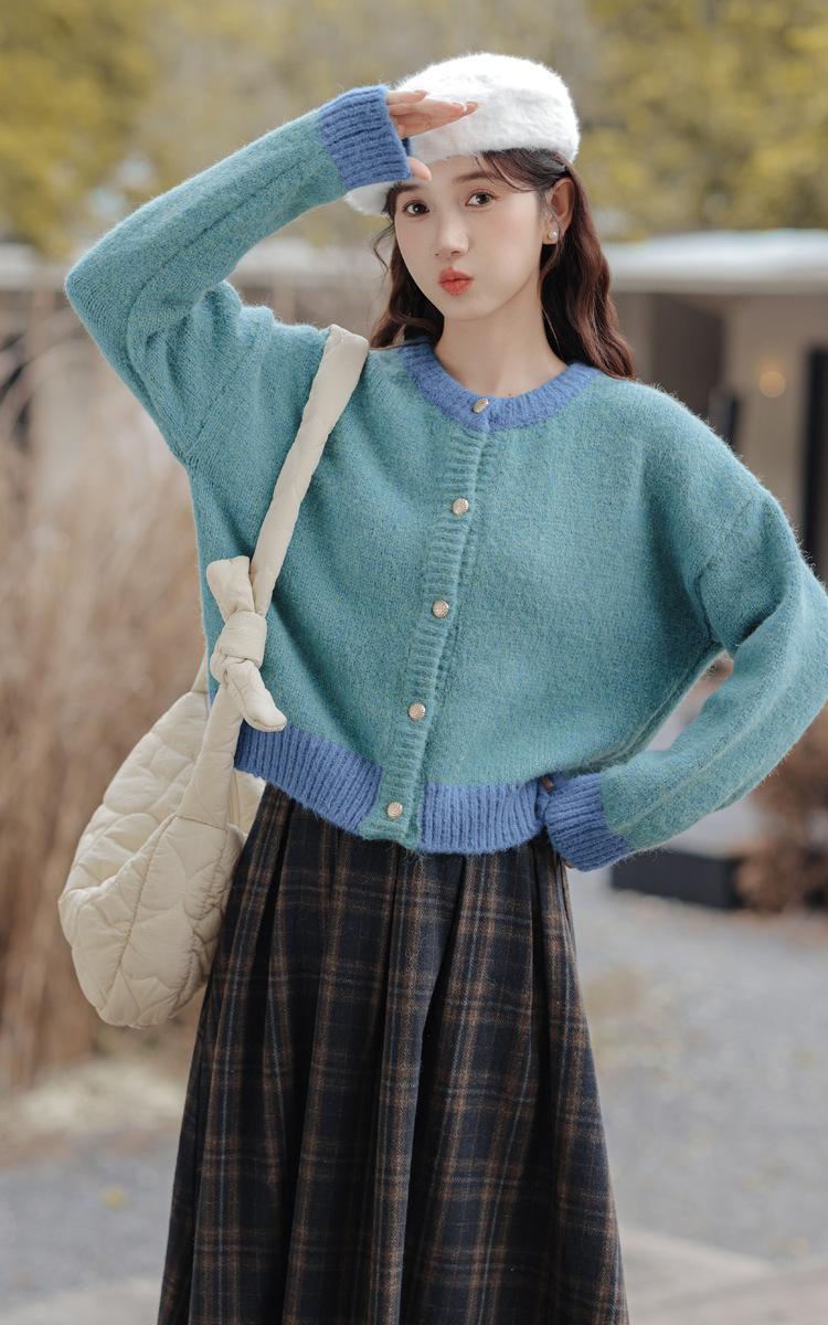 6445#Apricot cotton clothing, 6446#Blue sweater, 6441#Blue plaid skirt