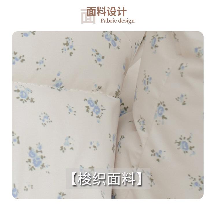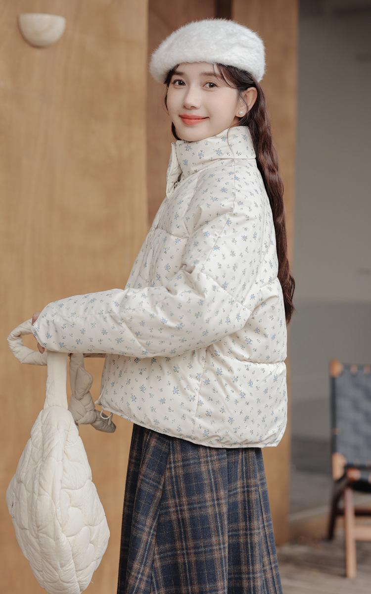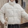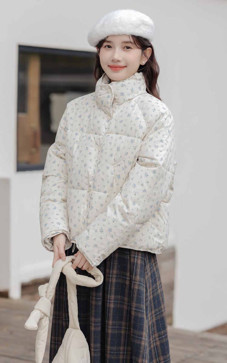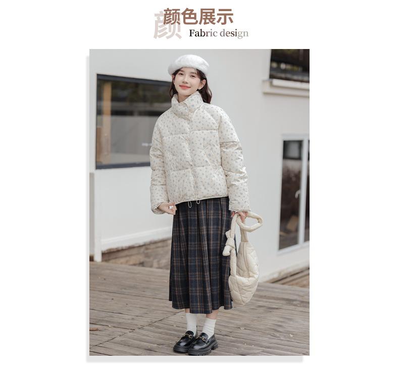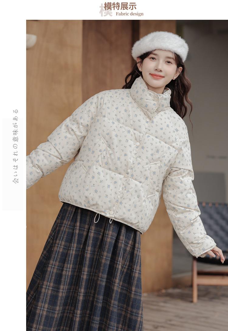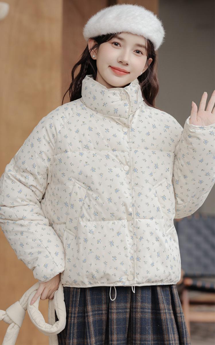 Abrigo acolchado de algodón para mujer, invierno 2024, nuevo estilo coreano, abrigo corto con cuello dulce y estampado floral, traje de pan pequeño.