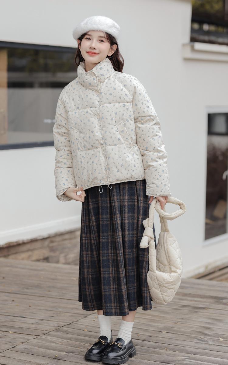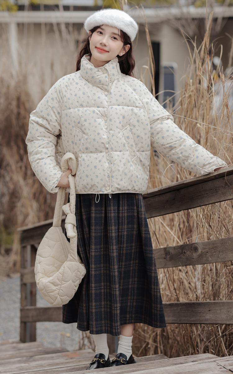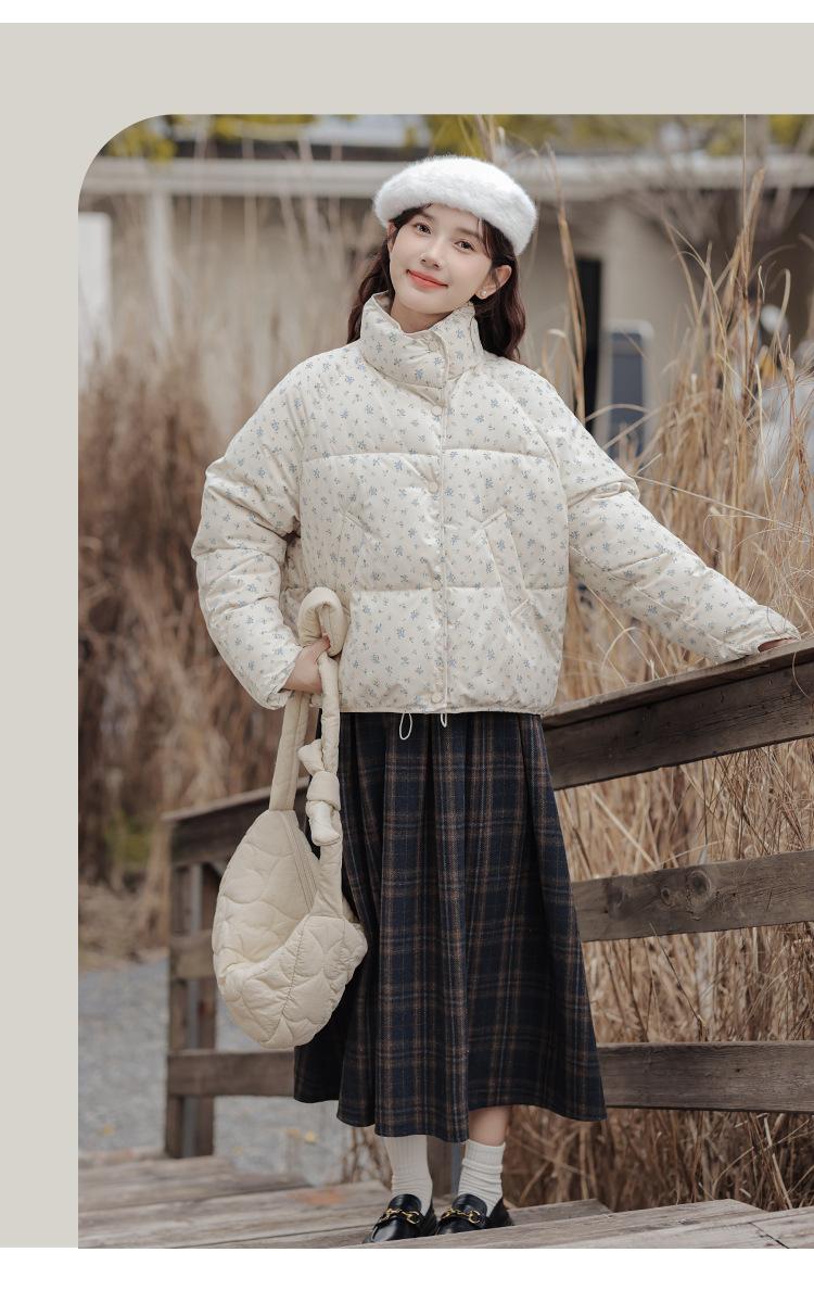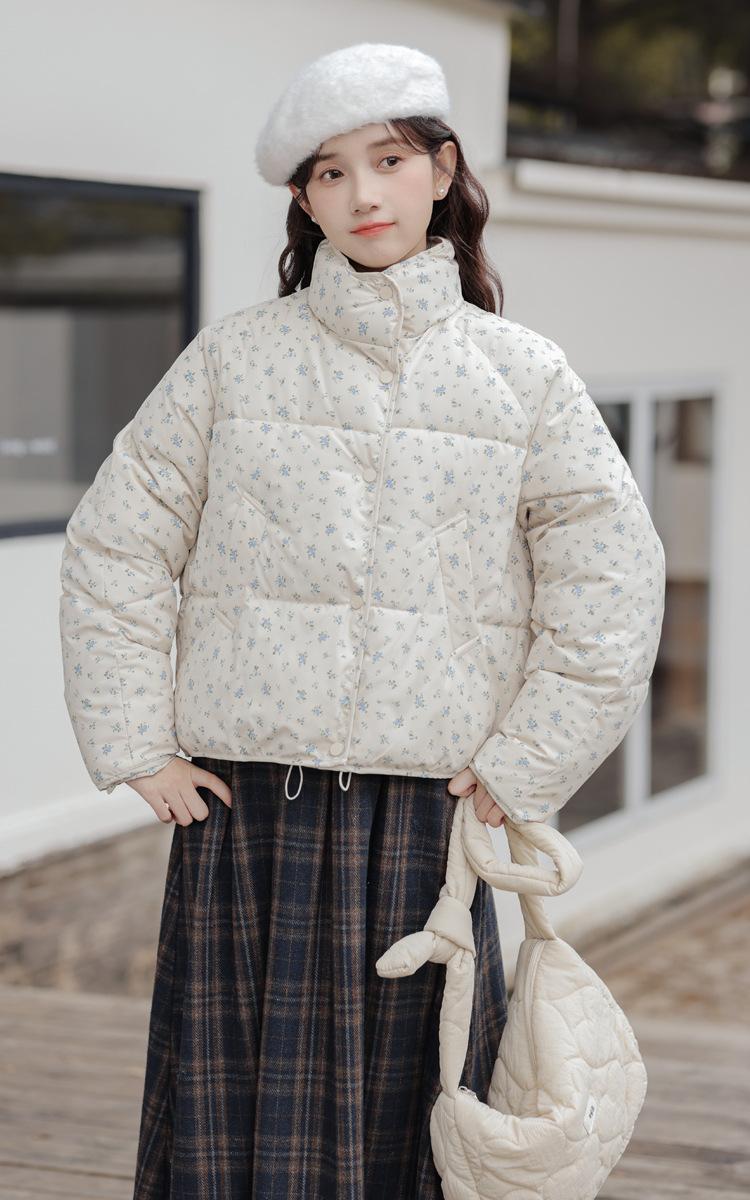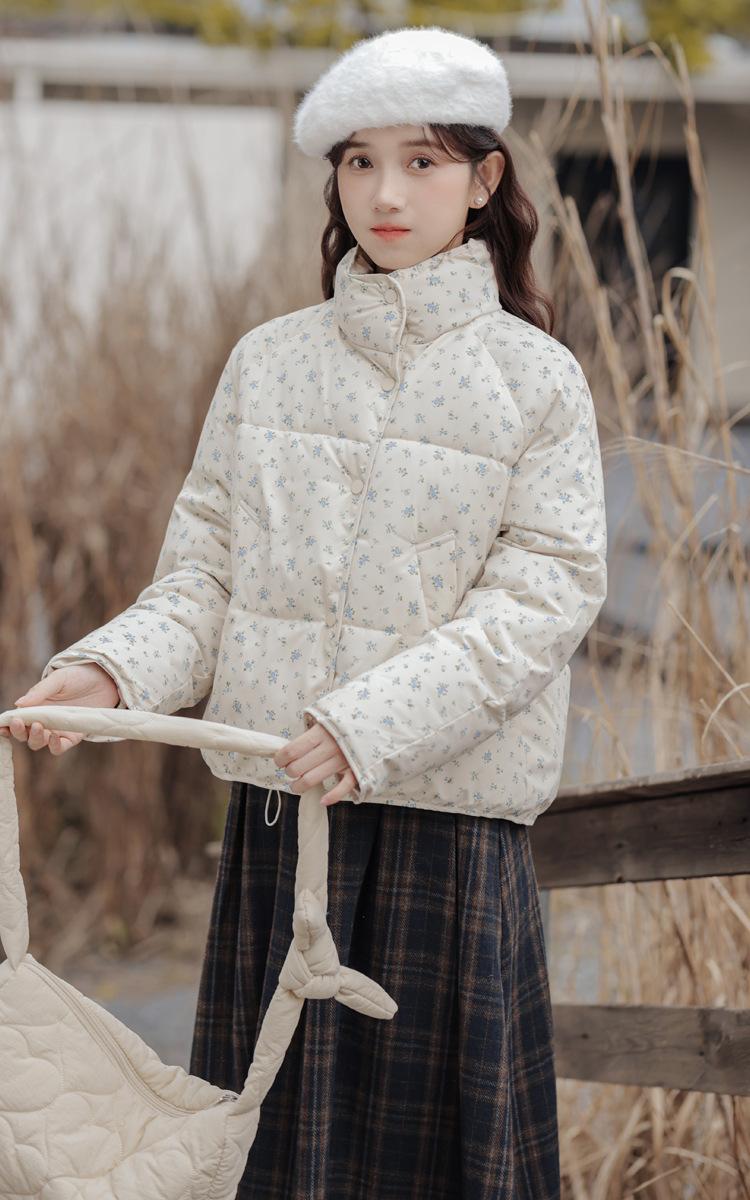 Abrigo acolchado de algodón para mujer, invierno 2024, nuevo estilo coreano, abrigo corto con cuello dulce y estampado floral, traje de pan pequeño.