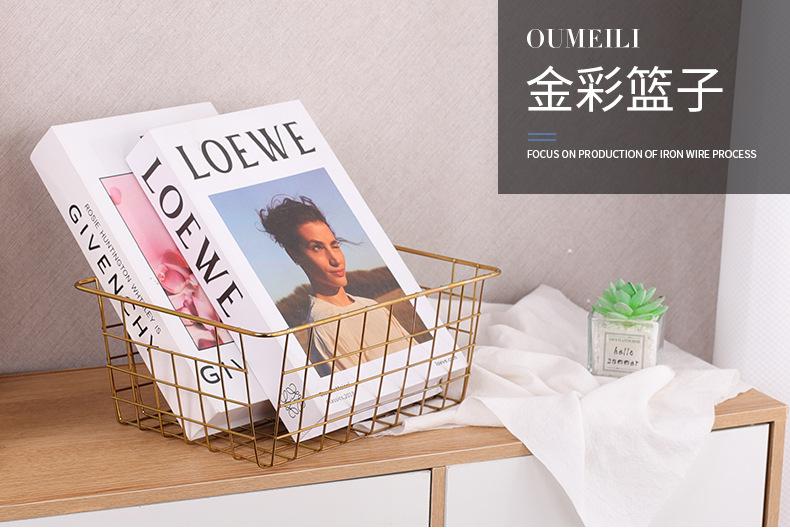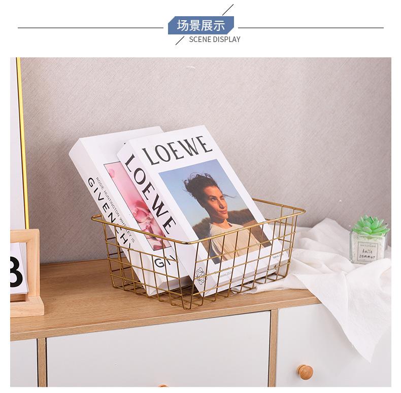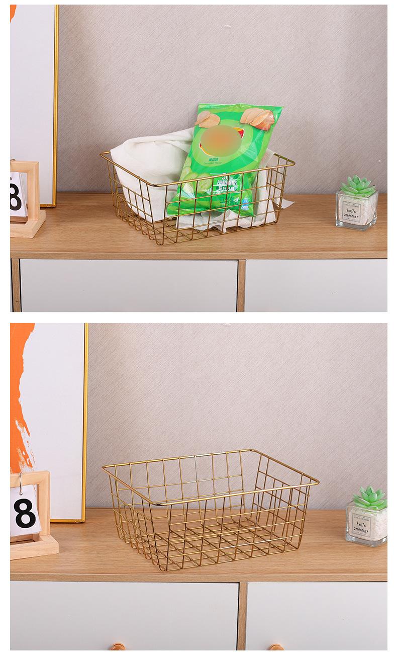 Cesta de color dorado para oficina, baño, mesa, sala de estar, caja de almacenamiento, aperitivos, frutas, artículos diversos, cesta de almacenamiento multifuncional