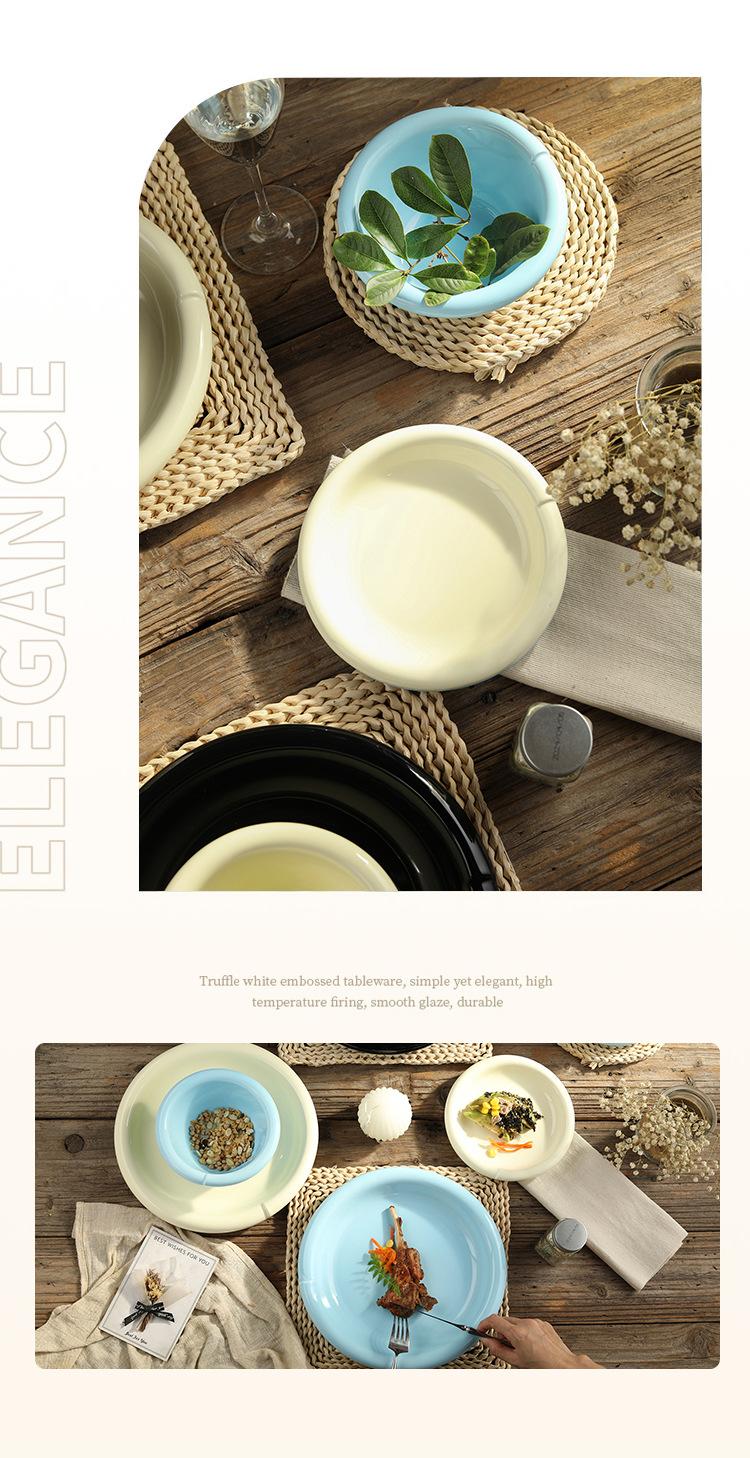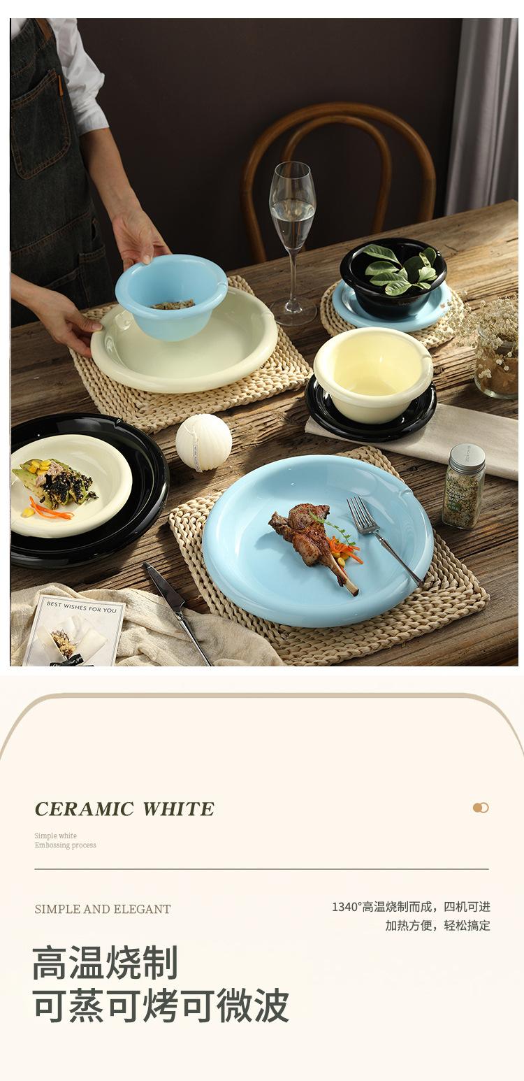 Plato de crema de estilo nórdico, vajilla de cerámica para el hogar, tazón de arroz esmaltado de alto color, plato de verduras combinado