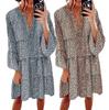 9016 * Vestido con estampado de leopardo de manga corta, cintura alta, escote en V, sexy, estilo europeo y americano para mujer