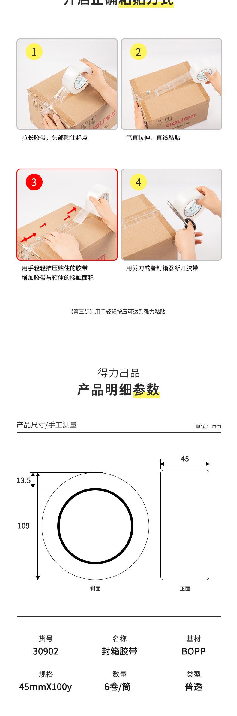 Deli 30902 cinta adhesiva de alta viscosidad, venta al por mayor, rollo de cinta transparente de 4,5 cm x 100 yardas, cinta de sellado