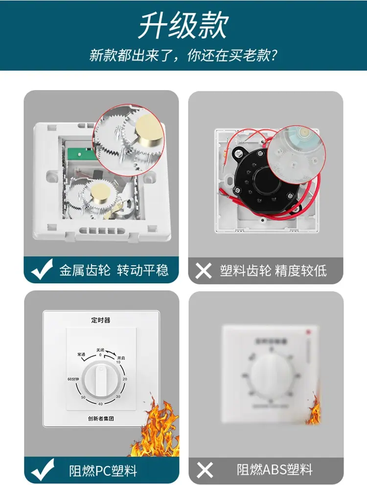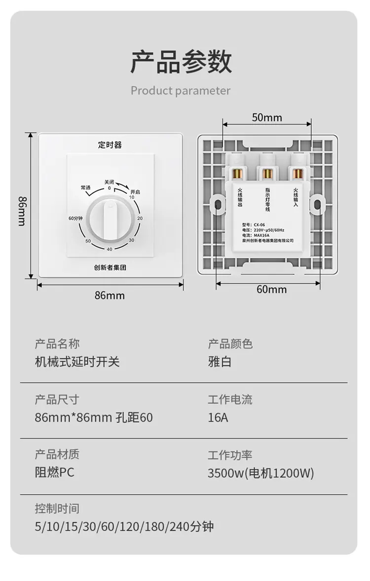 Temporizador de ventilador de cocina de 220 V con cuenta regresiva mecánica tipo 86, interruptor de apagado automático, controlador de temporizador de bomba de agua