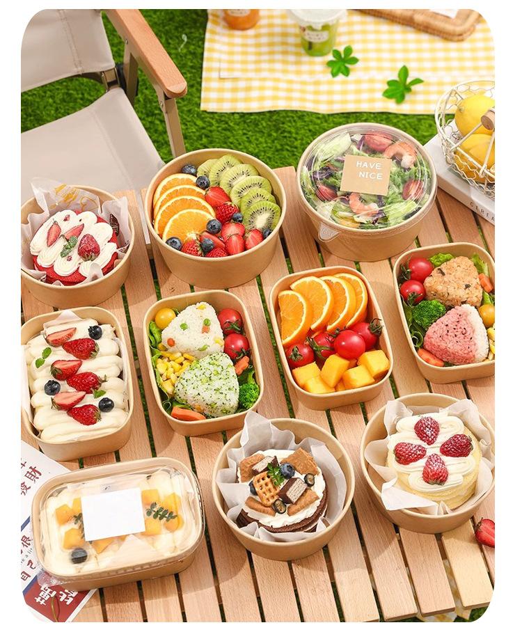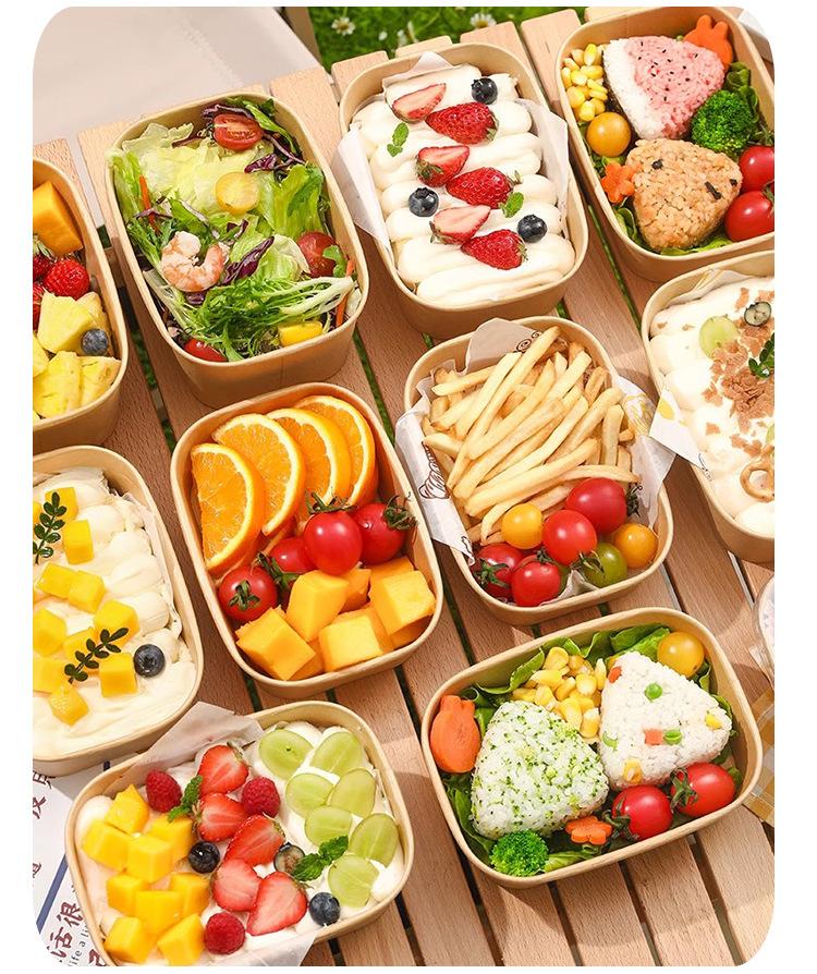 Lonchera desechable grado alimenticio calentamiento en microondas picnic comida ligera marinada papel kraft para llevar caja de embalaje lonchera