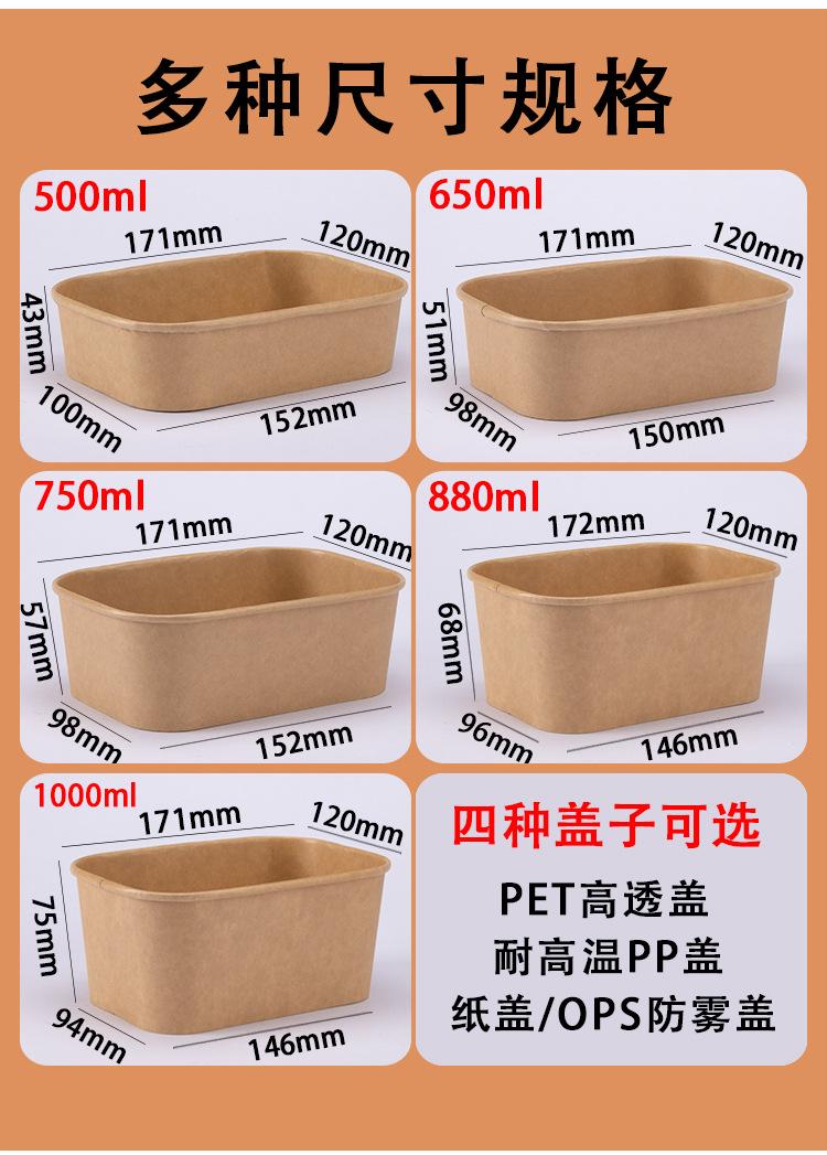 Extra thick 500 original color rectangular box + pet high transparency anti-fog high lid