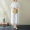 Vestido informal holgado de cuello redondo, manga corta, estilo japonés, fino y artístico, para mujer, verano 2024, n.° 2036