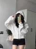 Sei jauiq American Single ~ Cardigan com zíper e capuz de cor sólida, jaqueta esportiva casual de veludo fino, suéter feminino reto