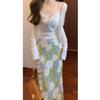 Cárdigan de punto para mujer con protección solar de punto calado francés, falda con tirantes exteriores, blusa delgada, chal, top para aire acondicionado