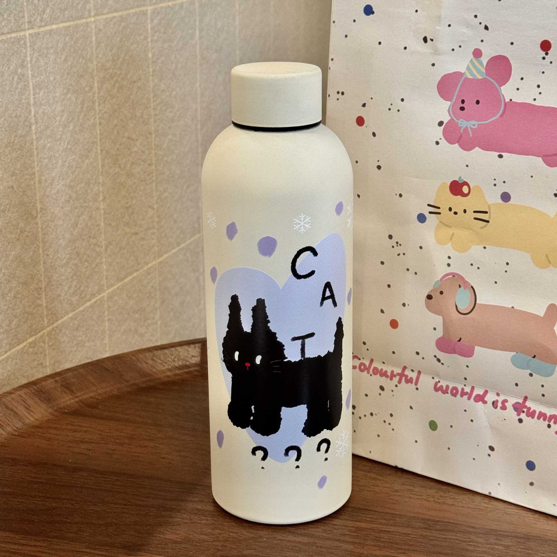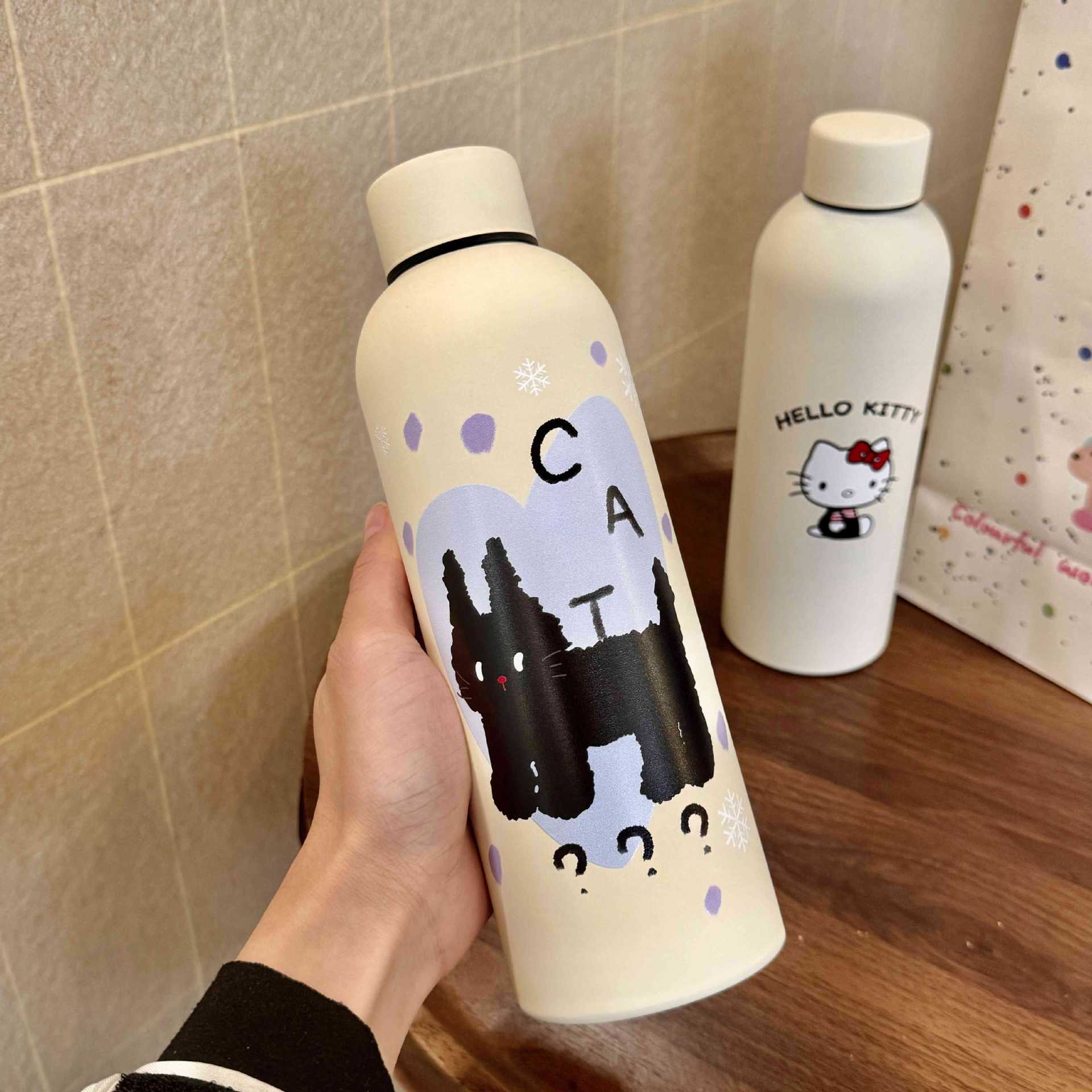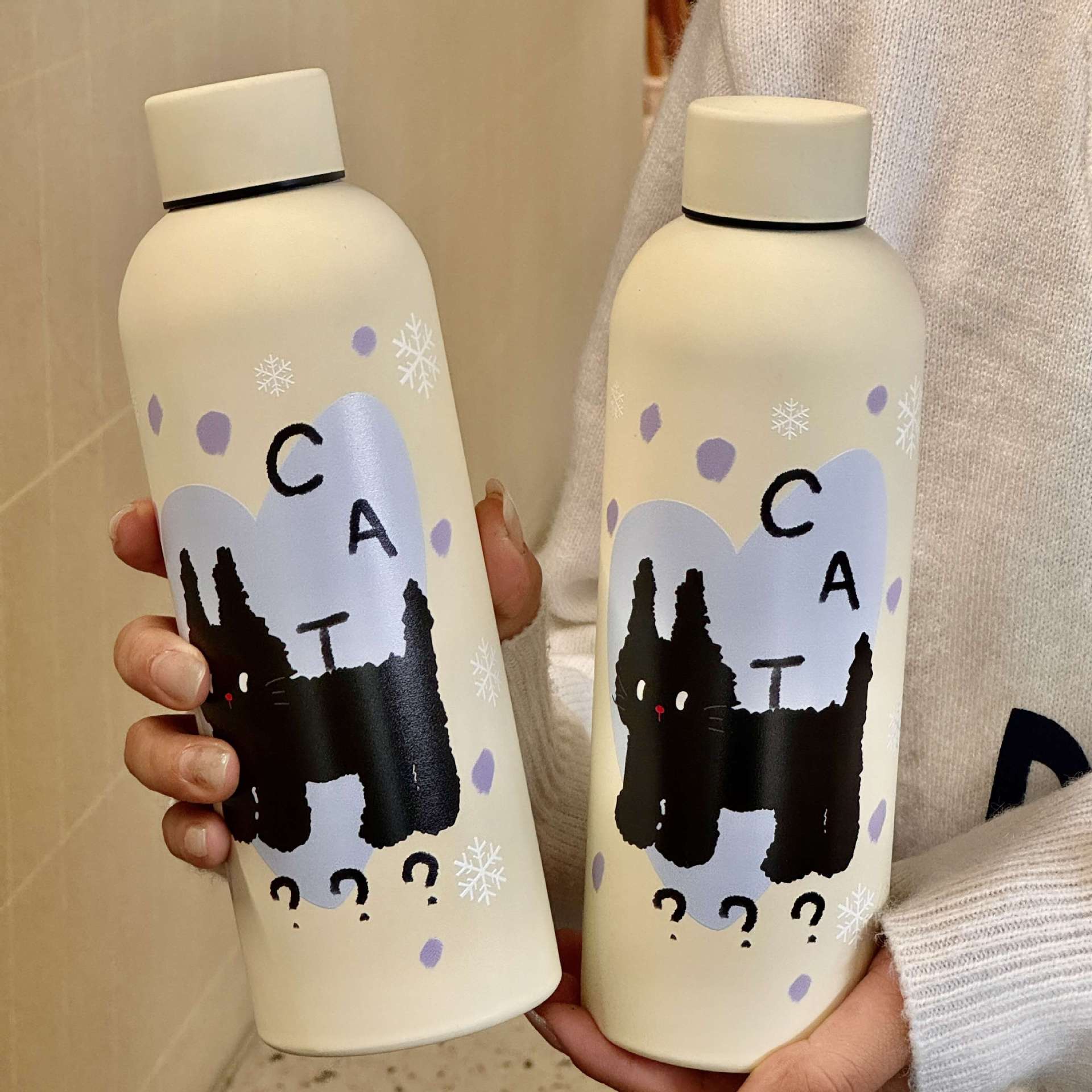 Nueva taza de acero inoxidable 304 con diseño de gatito negro, de alto valor de color, portátil, para hombre, con letras sencillas, práctica taza