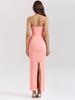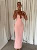 Falda Larga Nueva Transfronteriza Europea y Americana Sexy Moda Halter Cuello Descubierto Sin Mangas Ajustado Vestido Falda Rosa