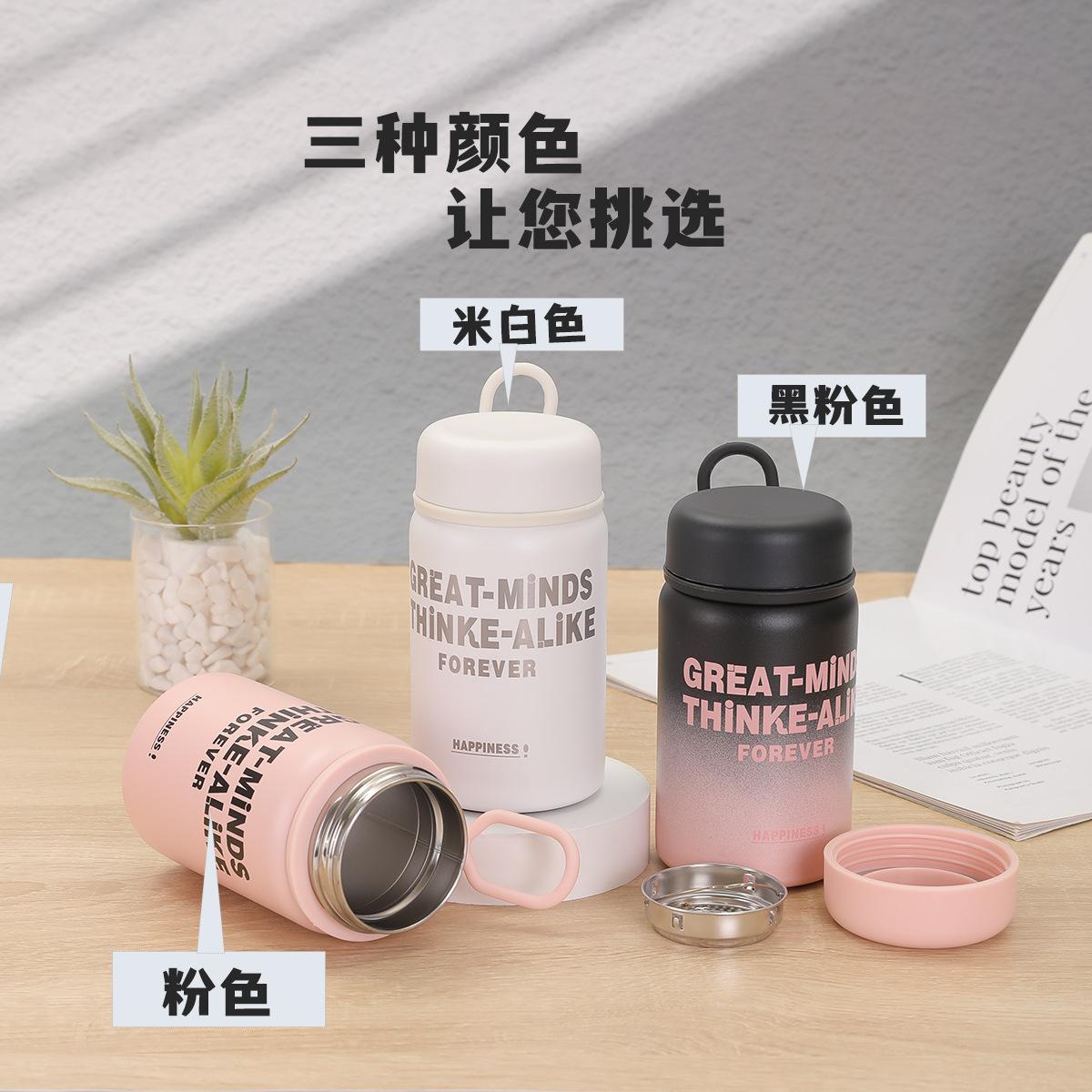Small round lid thermos cup [black and pink], Small round lid thermos cup [milk white], Small round lid thermo...