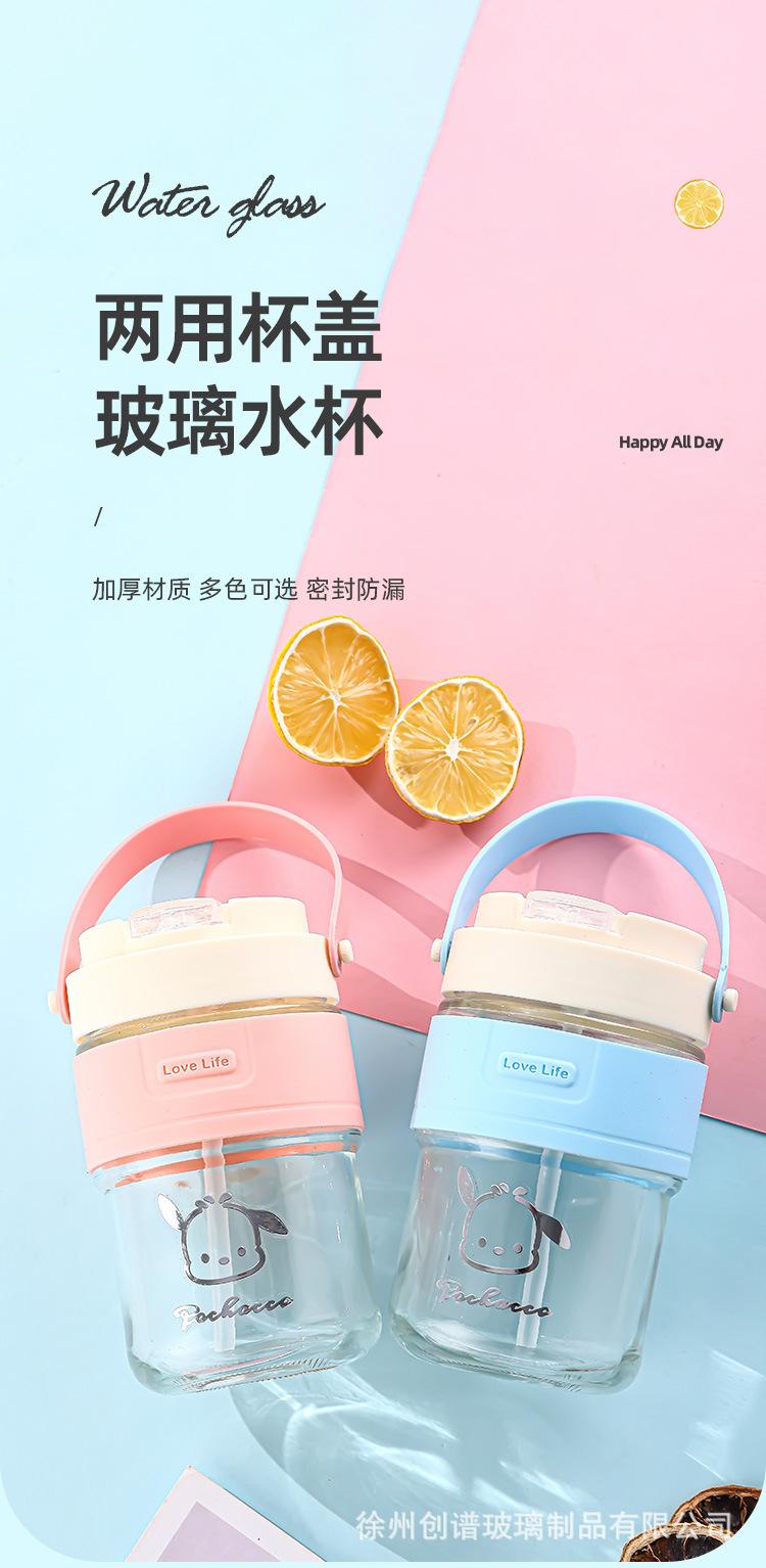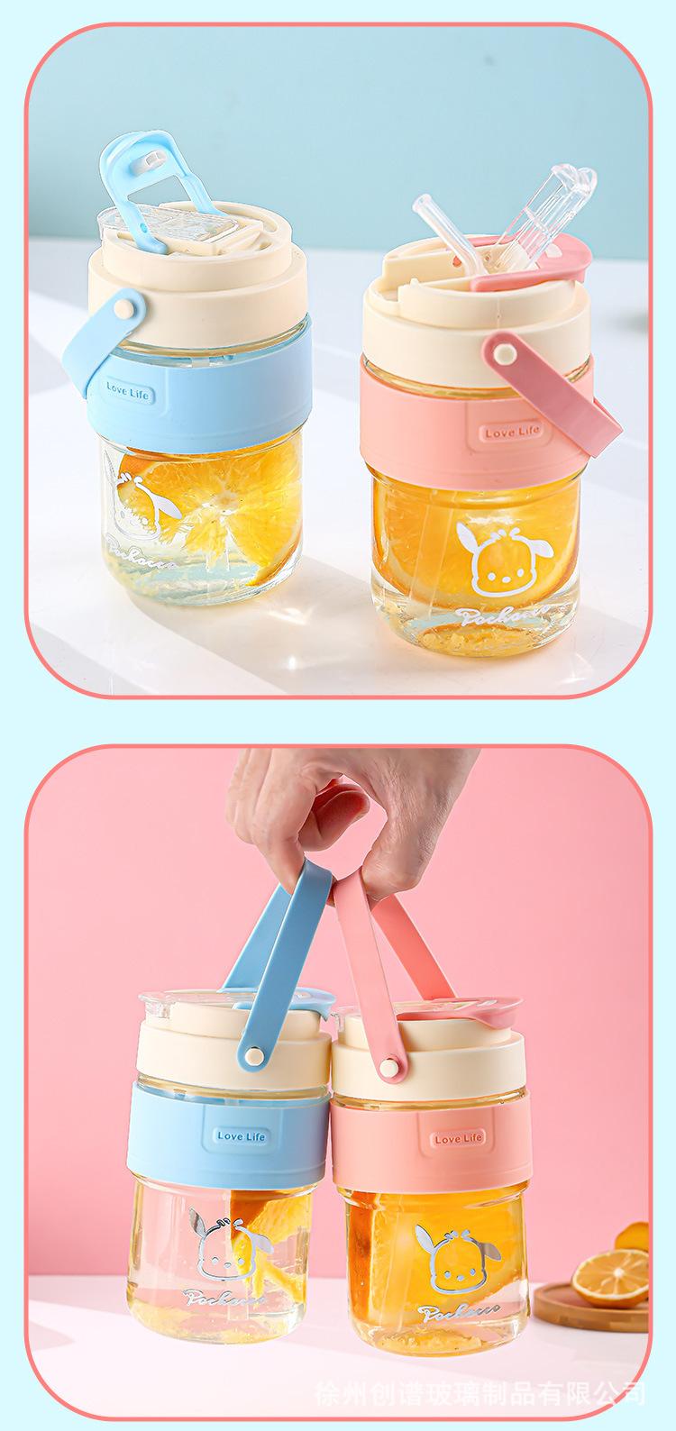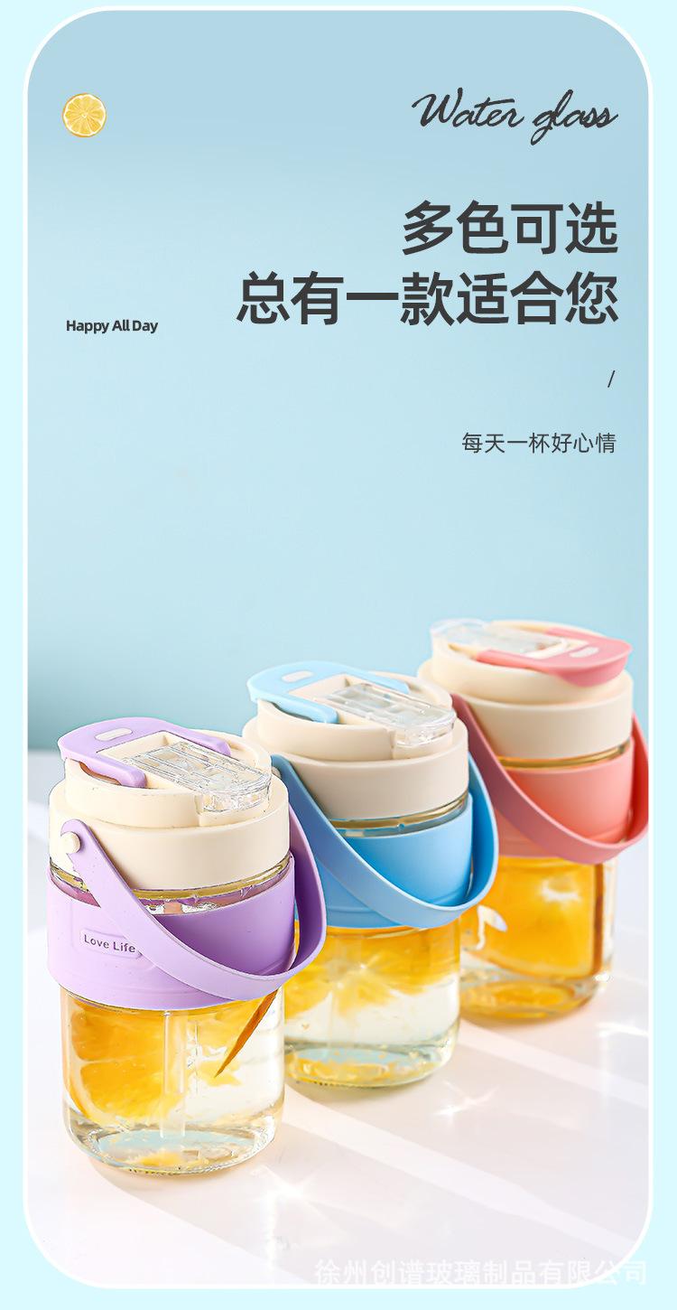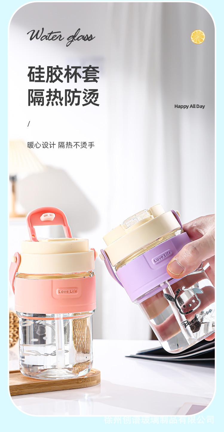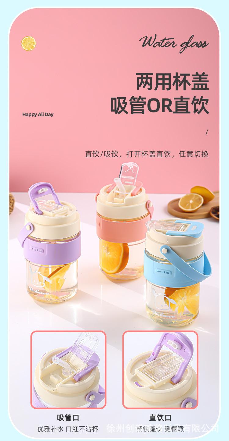Nueva taza doble para beber con asa y pajita, taza de vidrio resistente a altas temperaturas, taza de café portátil de alta apariencia para estudiantes