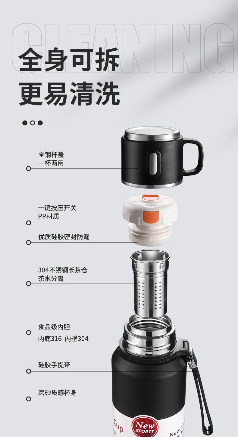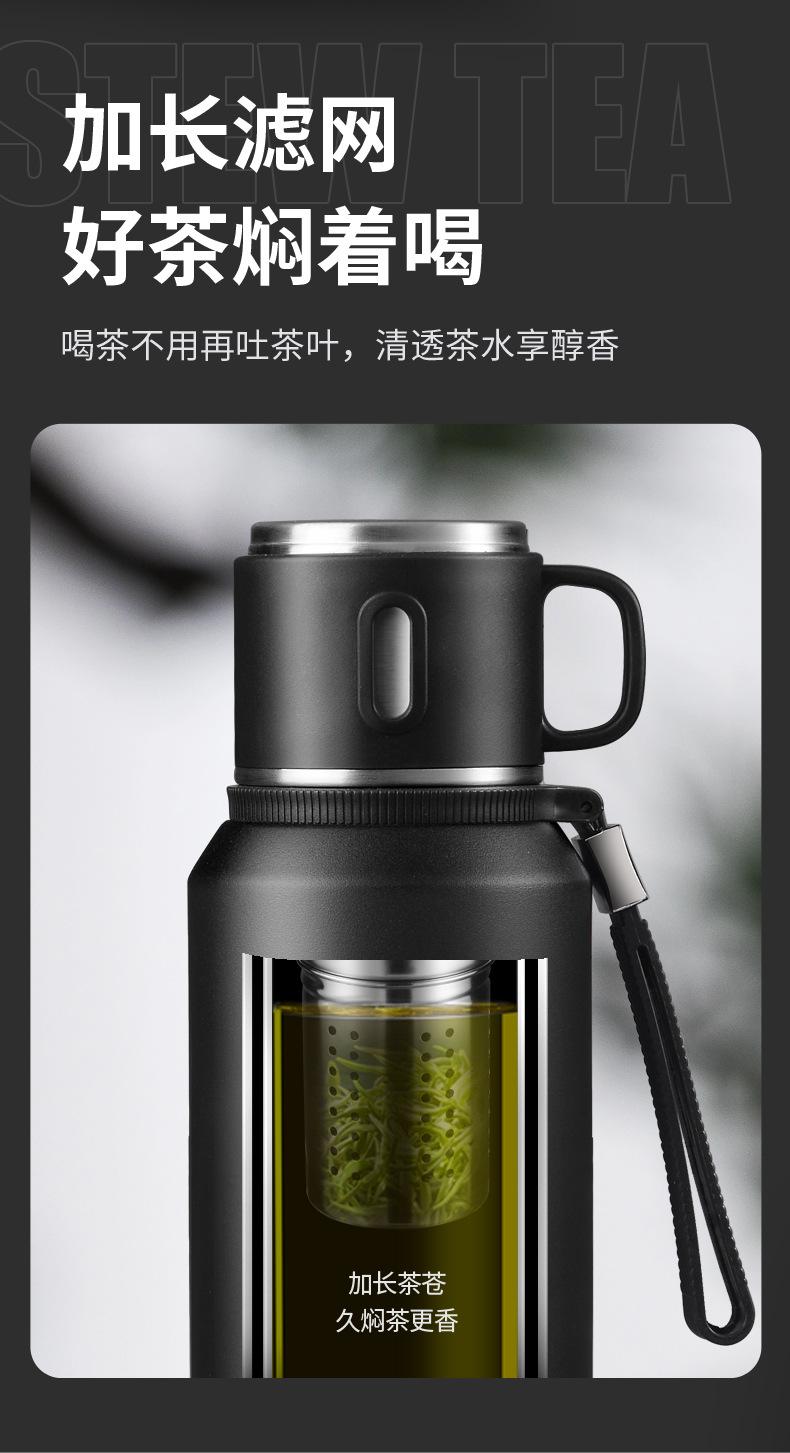 Viene con una correa de mano, red de separación de té y agua, posavasos antideslizante y la tapa de la taza se puede usar como una pequeña taza de agua.