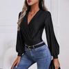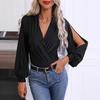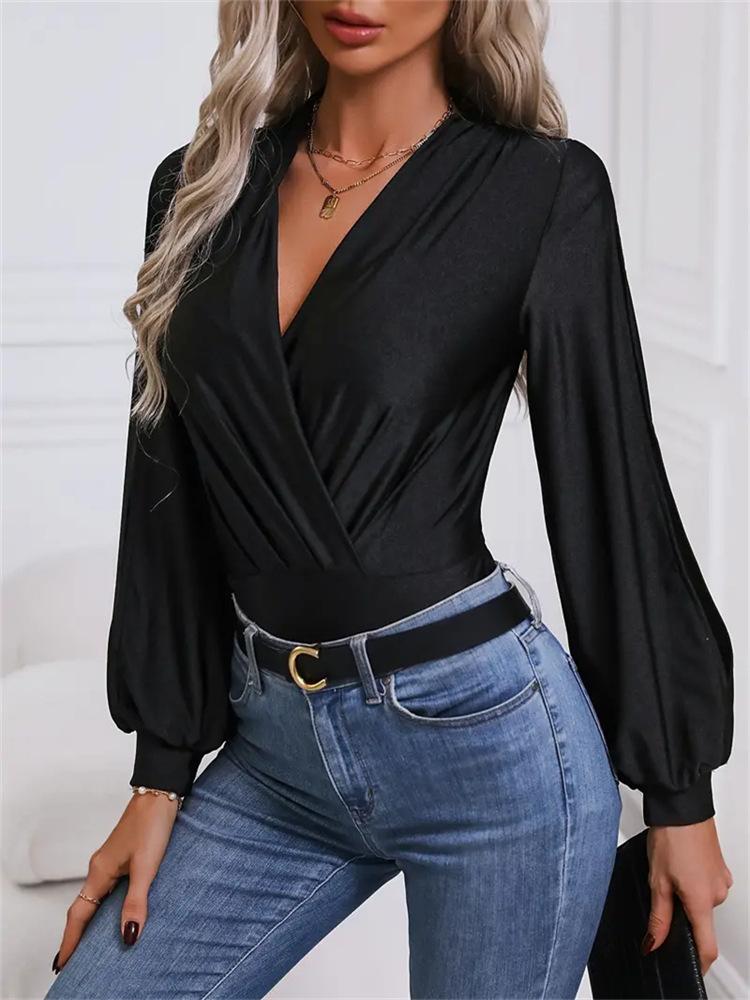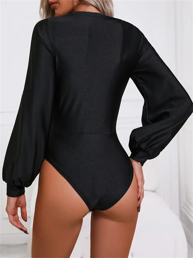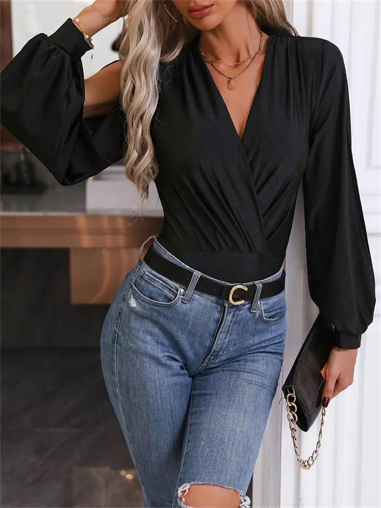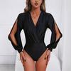 Mono de mujer ajustado con manga larga y escote en V elástico con puños plisados y calados para comercio exterior transfronterizo