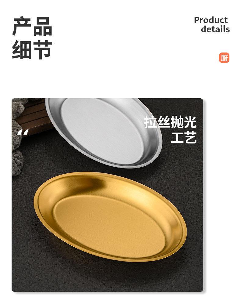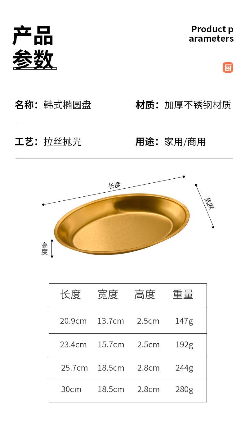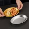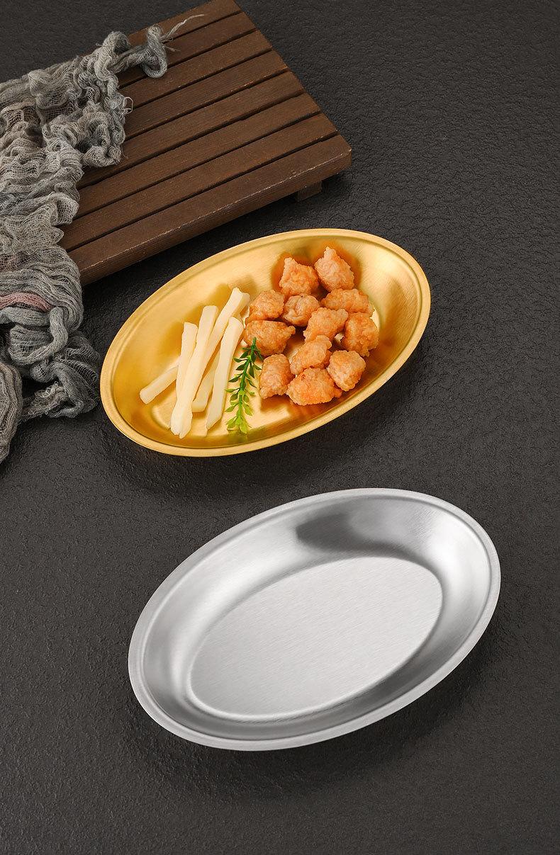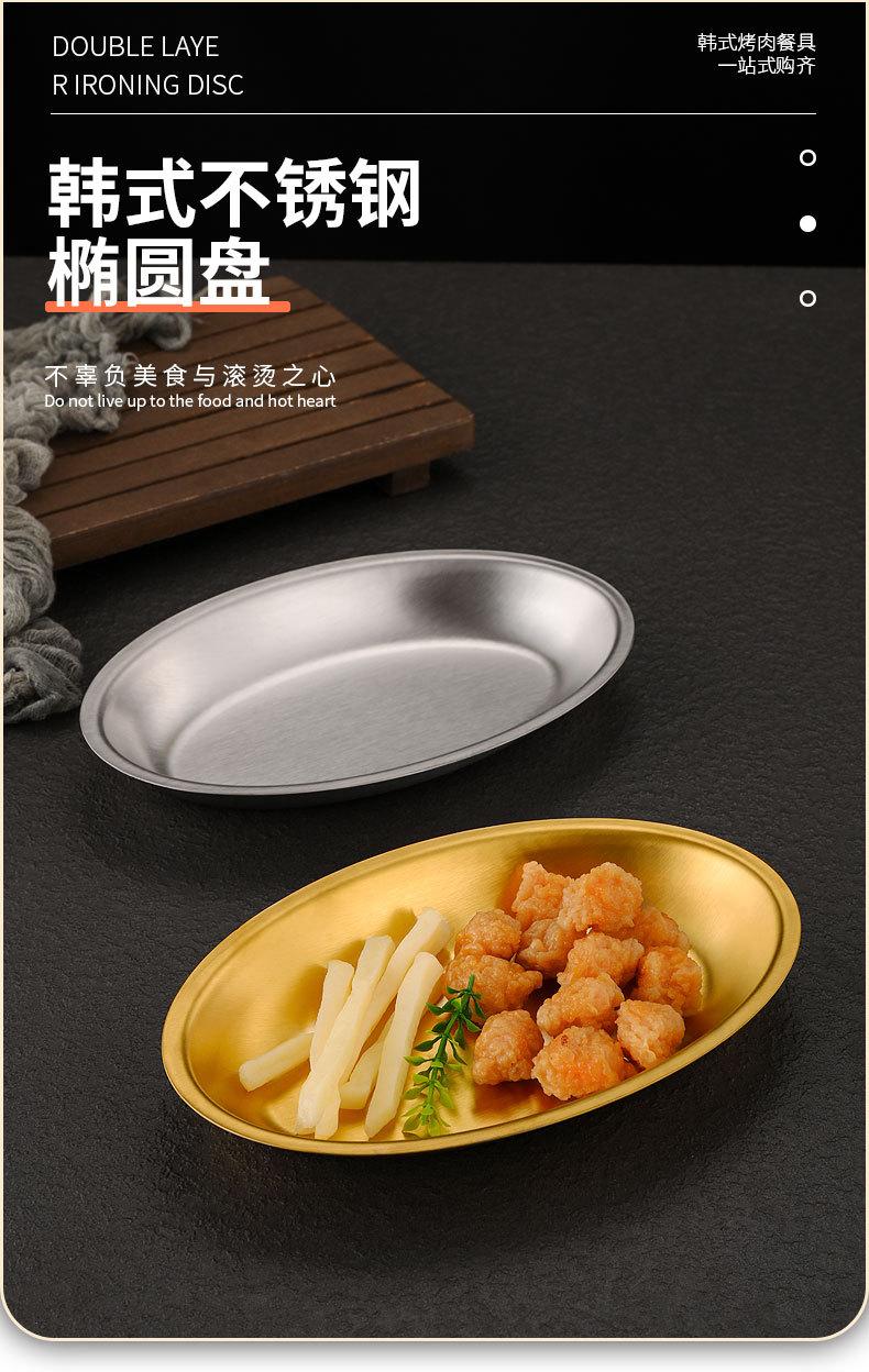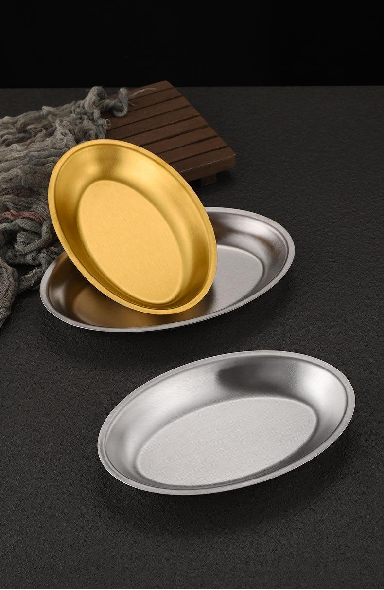 Plato ovalado de acero inoxidable estilo coreano, plato plano con forma de huevo para el hogar, plato para barbacoa, plato de cocina espesado para pescado al vapor, plato para la cena