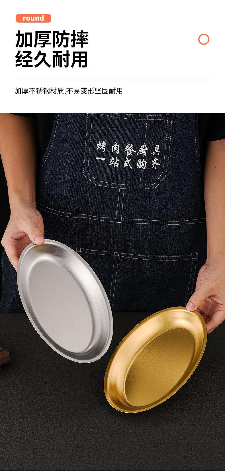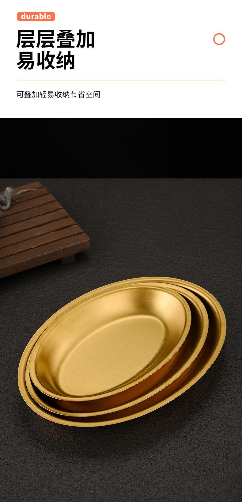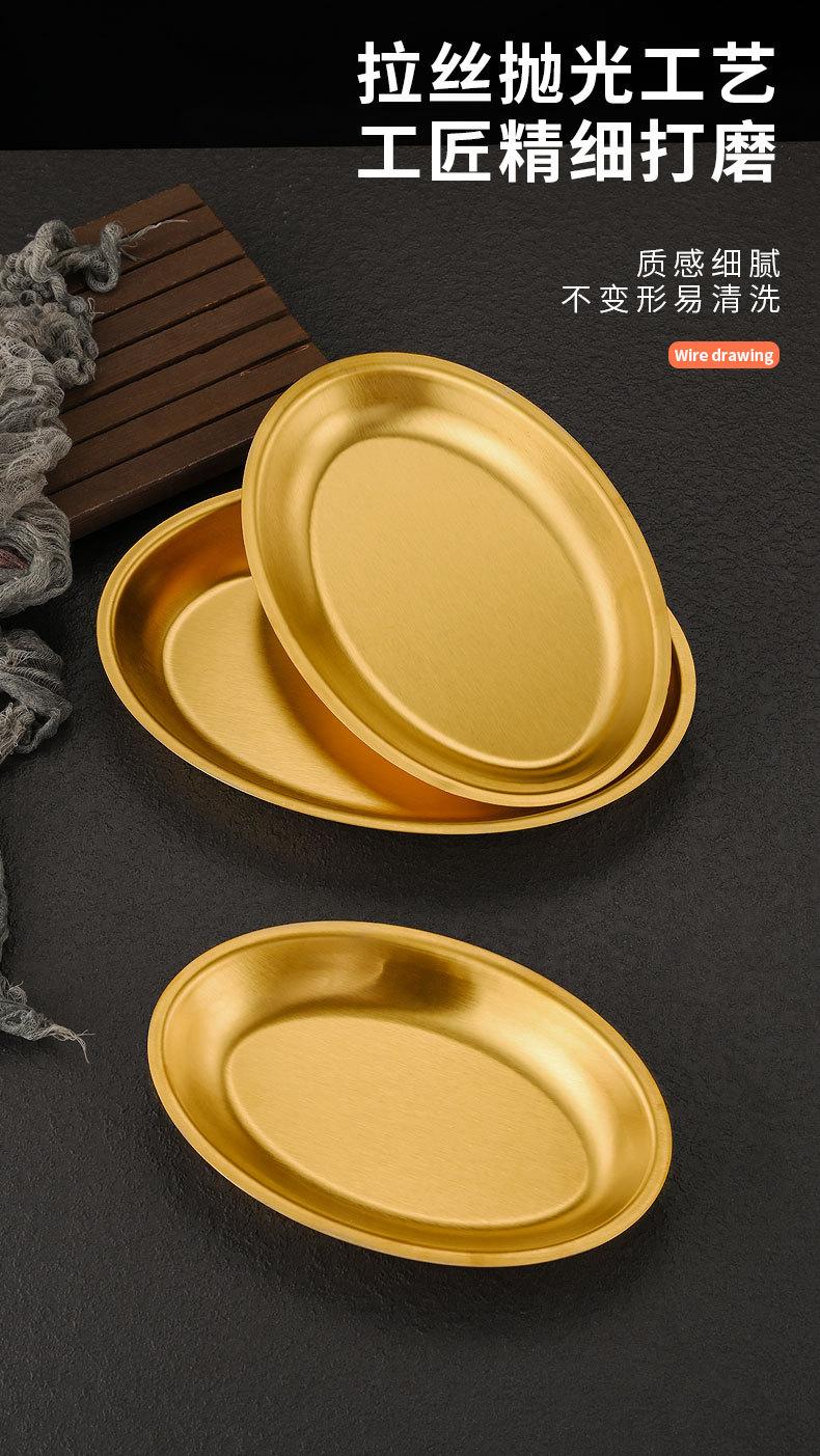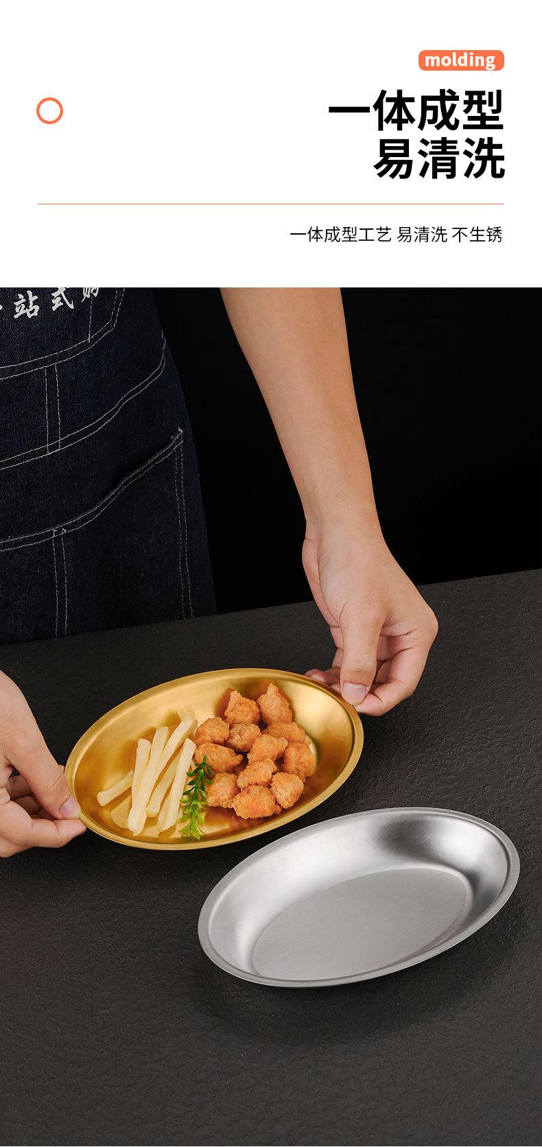 Plato ovalado de acero inoxidable estilo coreano, plato plano con forma de huevo para el hogar, plato para barbacoa, plato de cocina espesado para pescado al vapor, plato para la cena