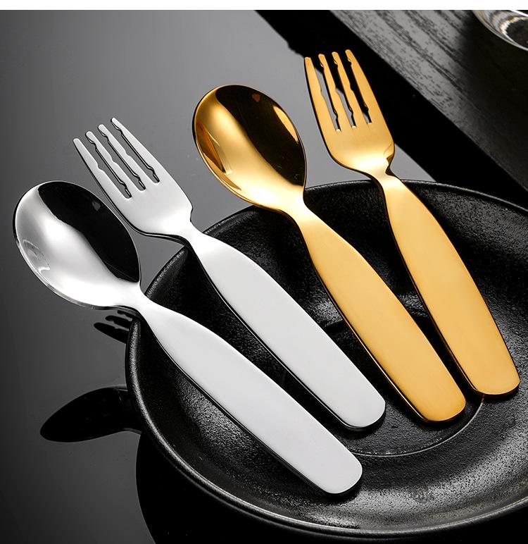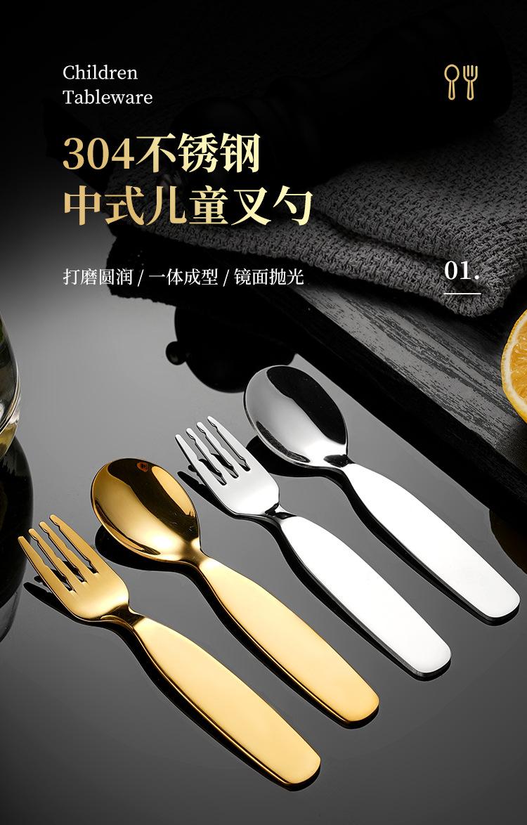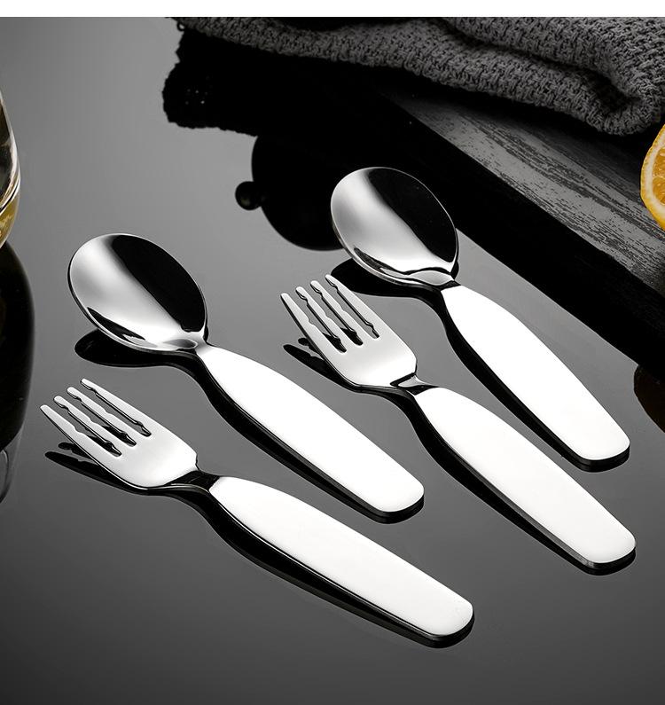 Cuchara y Tenedor para Niños de Acero Inoxidable 304, Engrosados para Uso Doméstico, Cuchara para Comida de Bebé, Vajilla para Niños Pequeños, Cuchara Redonda para Postre