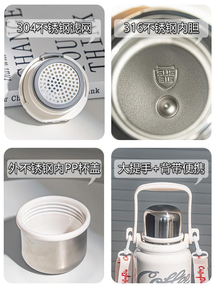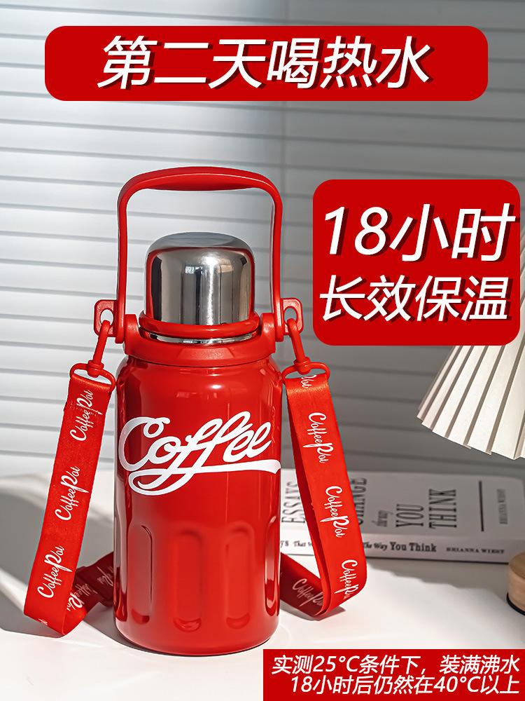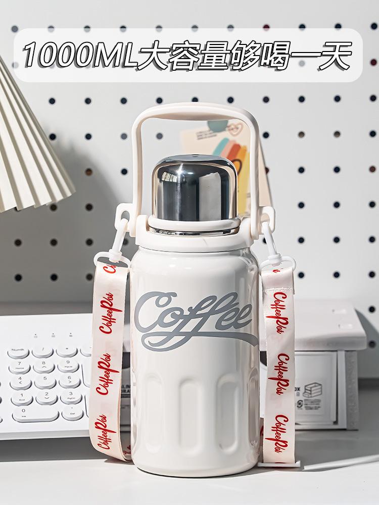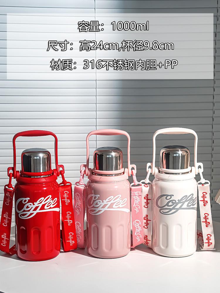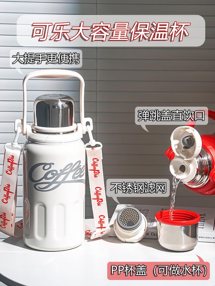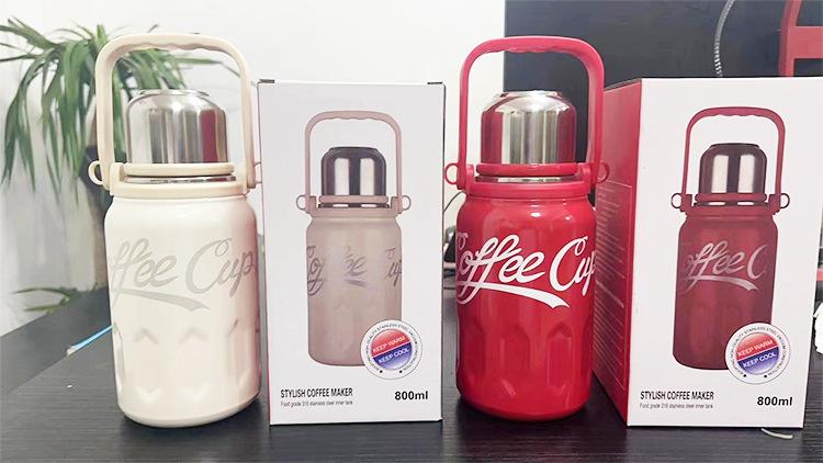 Termo de acero inoxidable de grado alimenticio engrosado de gran capacidad, termo deportivo de alto valor cromático, portátil para exteriores con asa