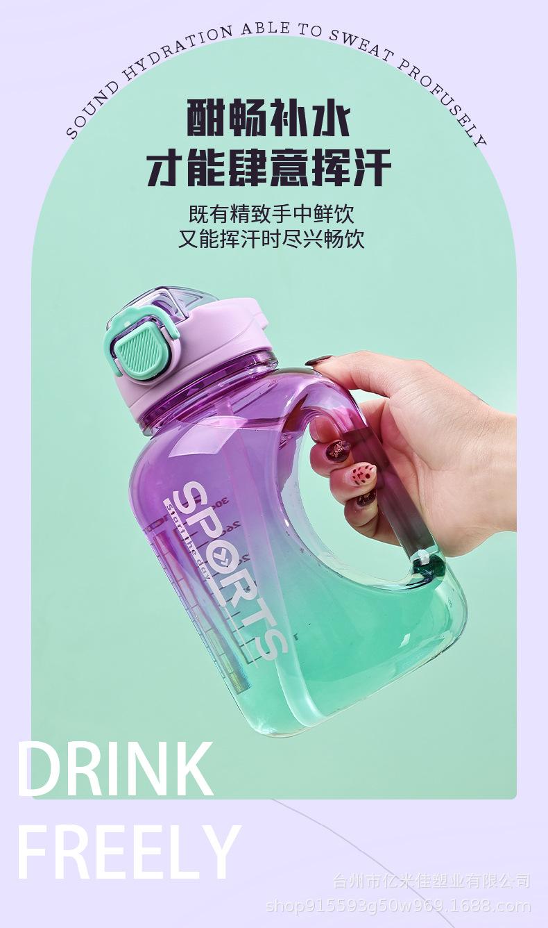 Botella de agua deportiva de gran capacidad, tipo barril, para fitness, correr, portátil, grande, de gran valor, con cubo y hervidor espacial.