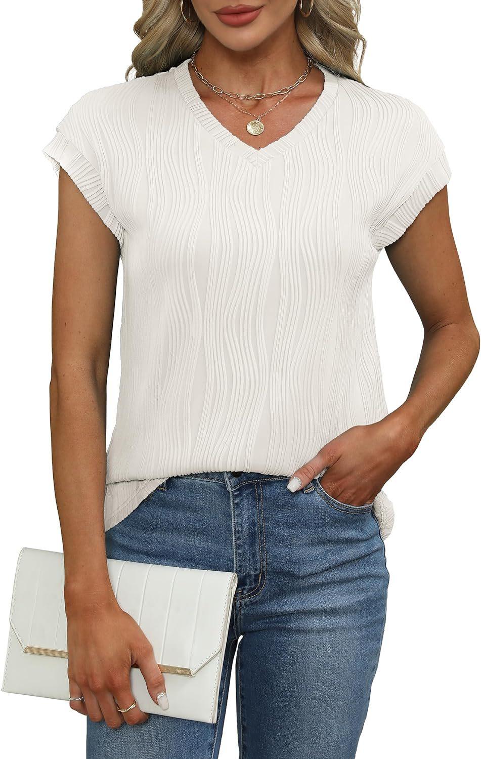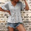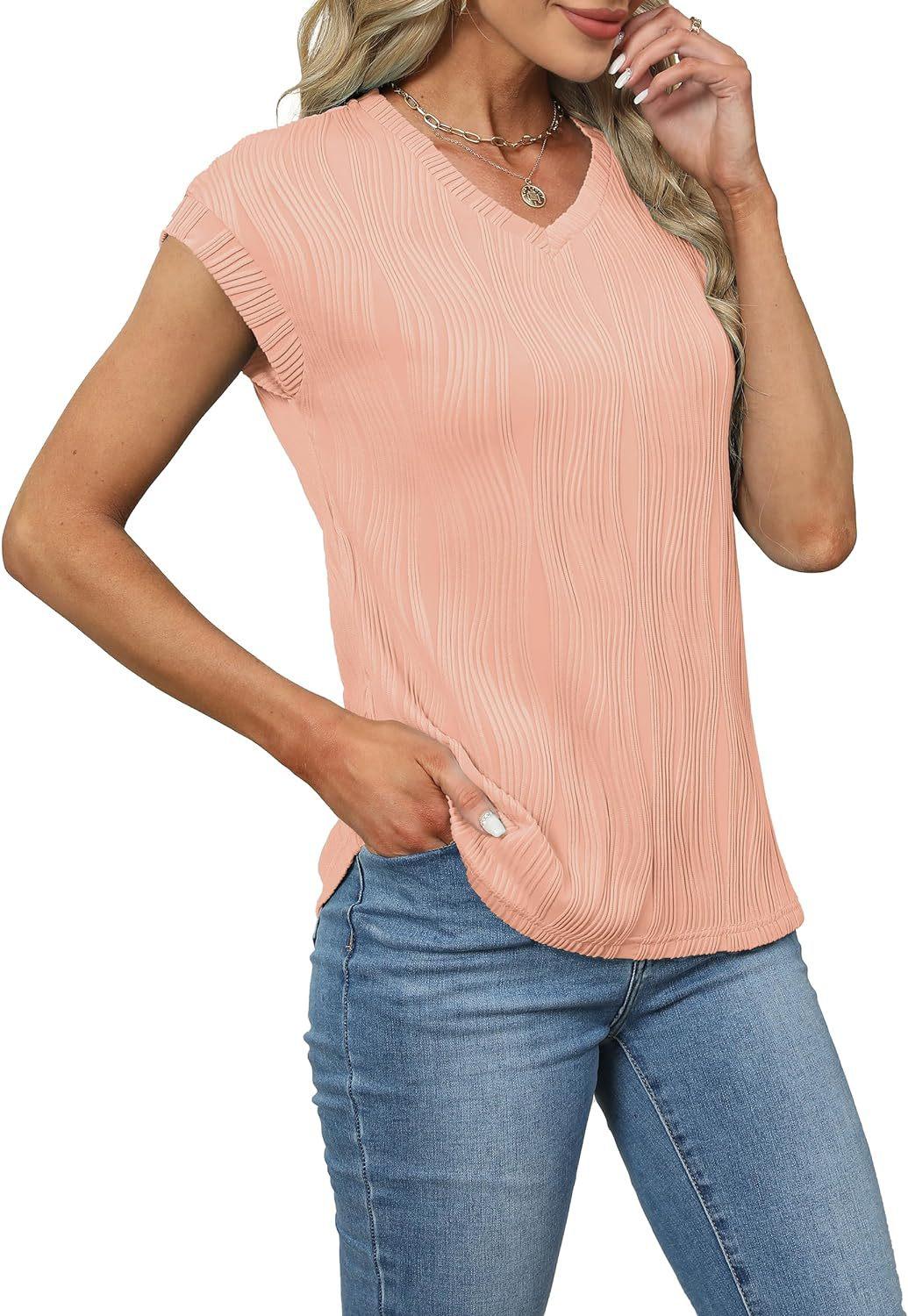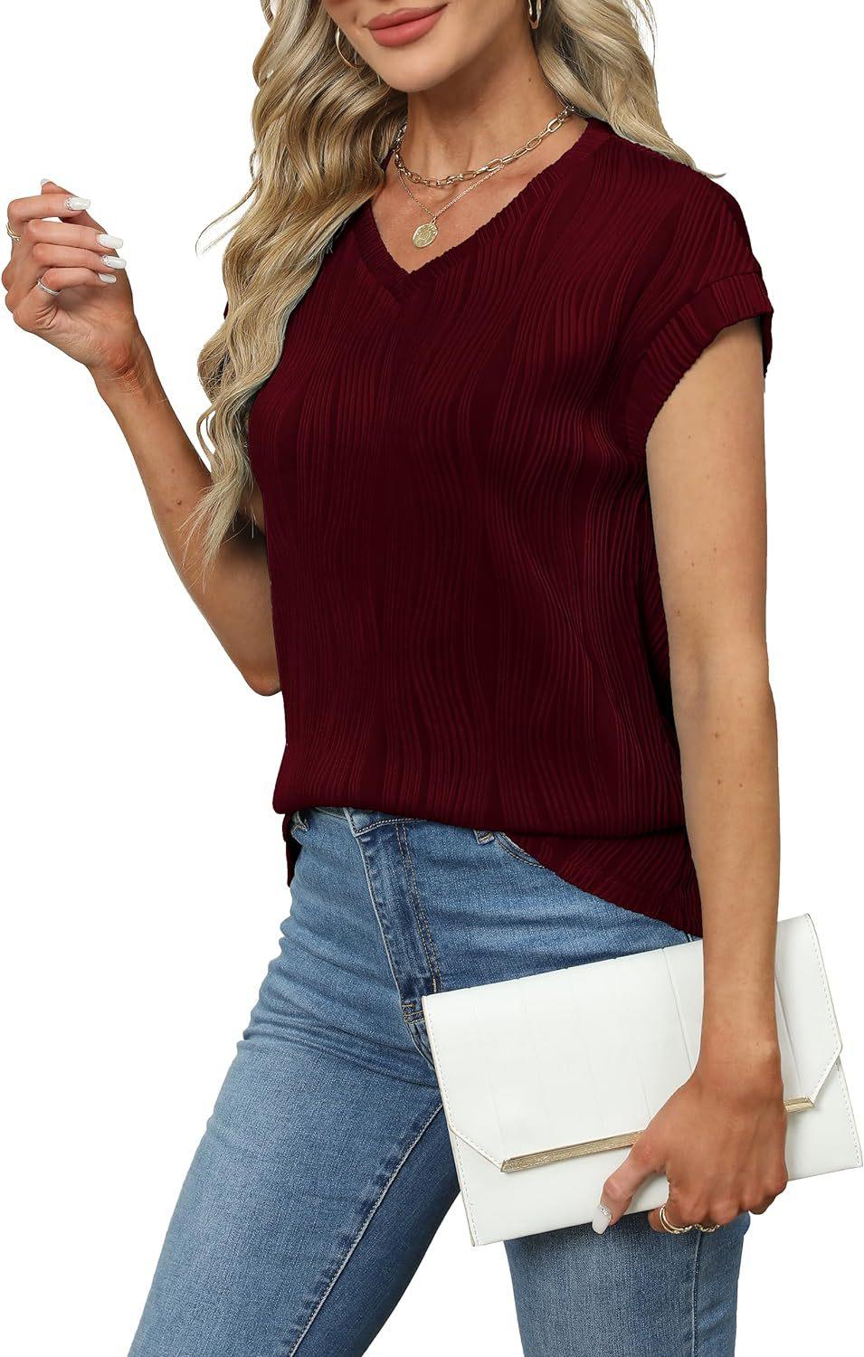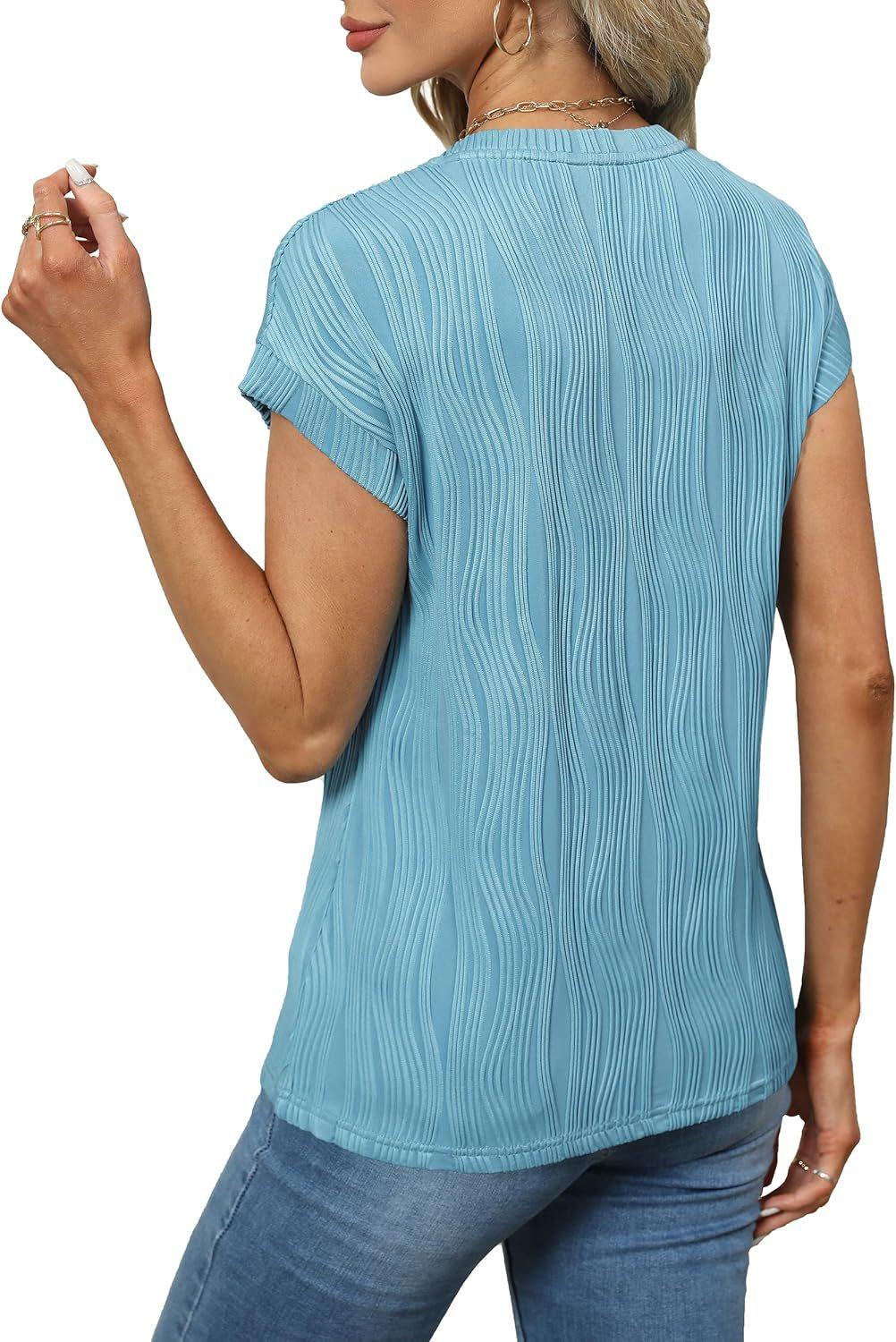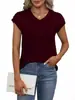 Camiseta holgada de manga corta con cuello en V, color liso, para verano de 2024, para comercio exterior transfronterizo entre Europa y América de Amazon Independent Station