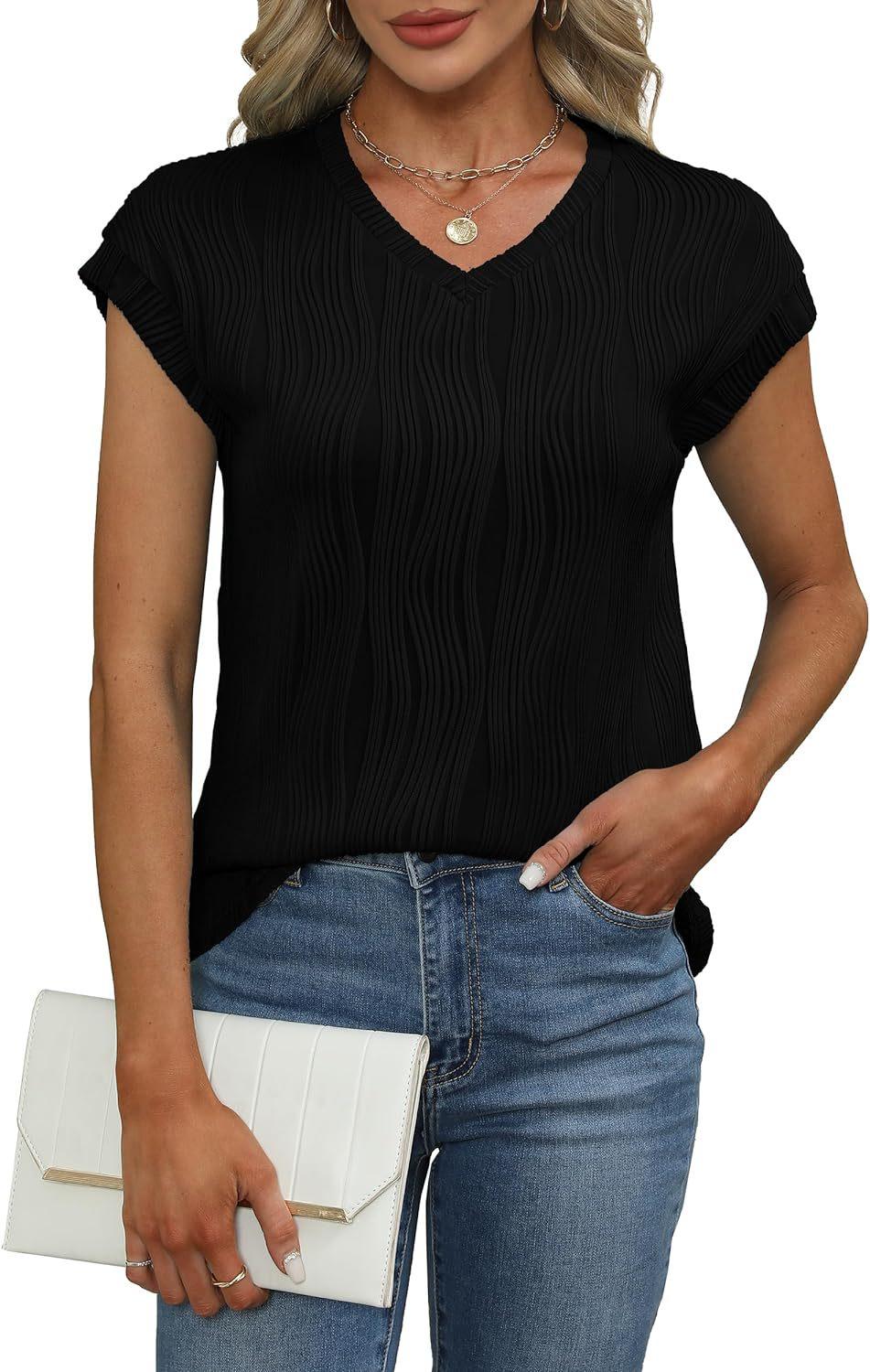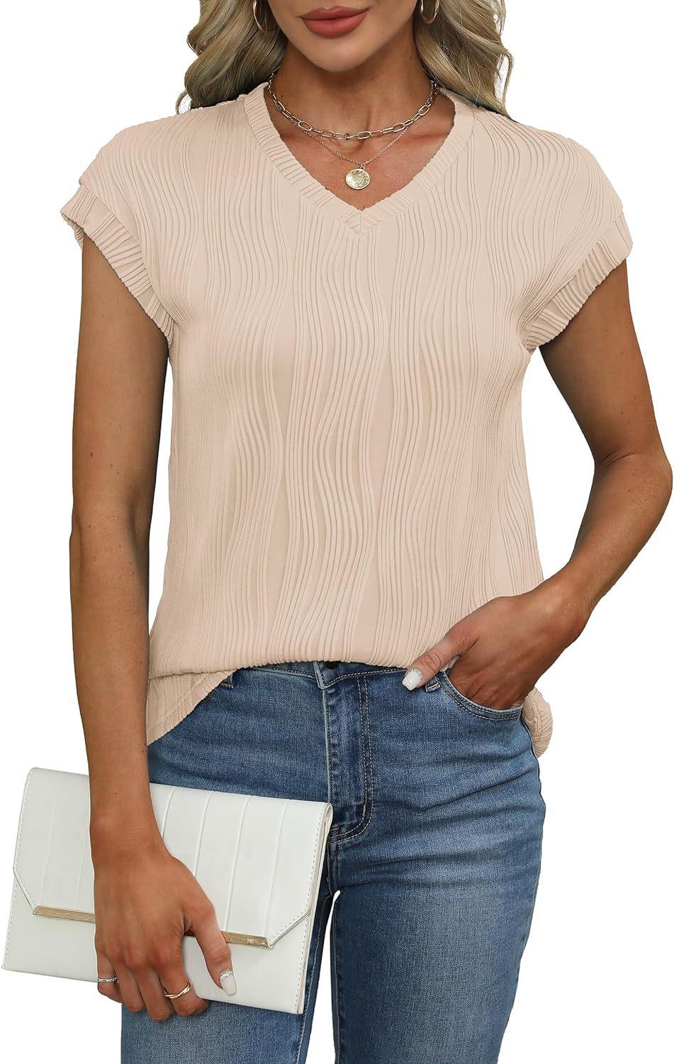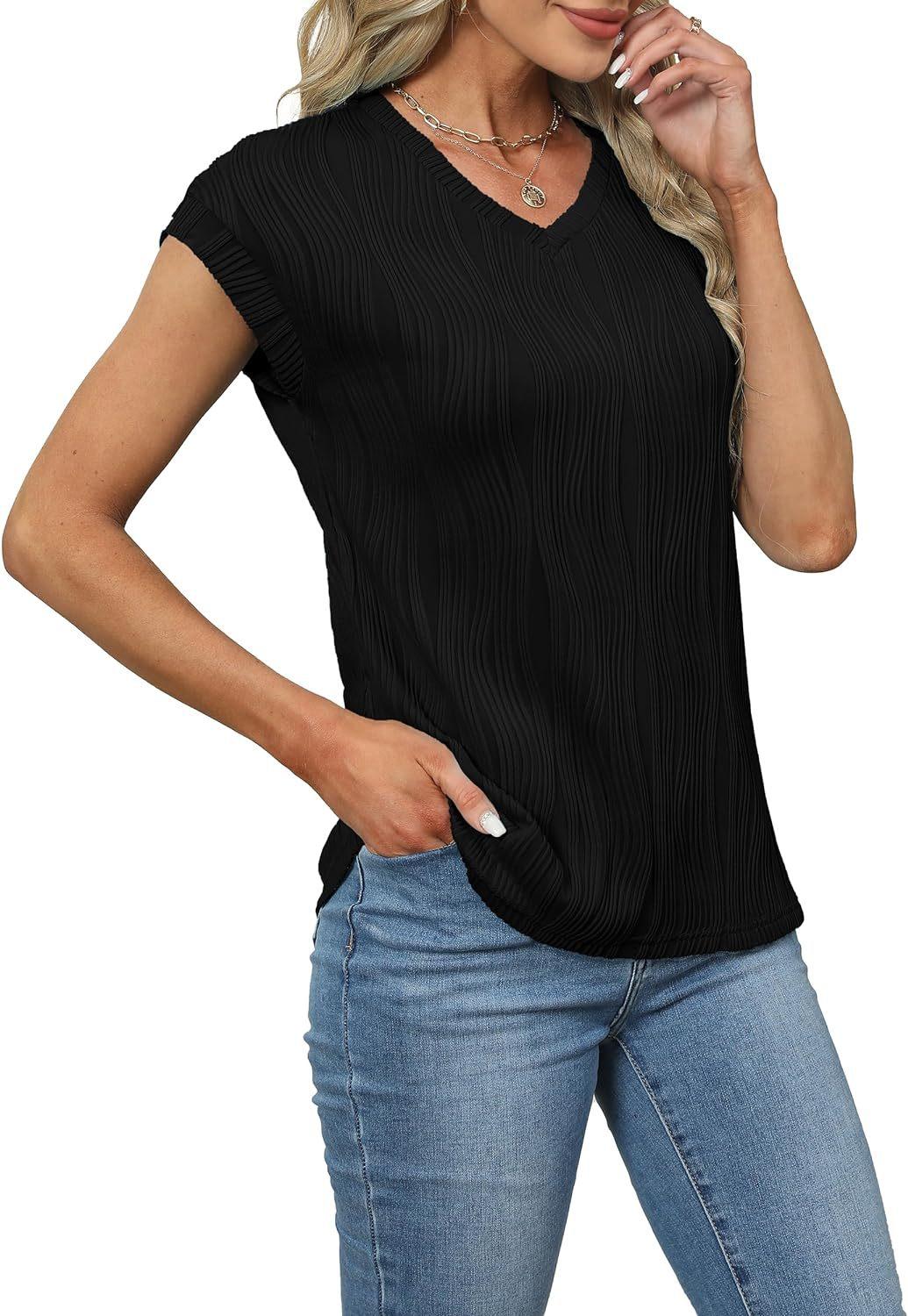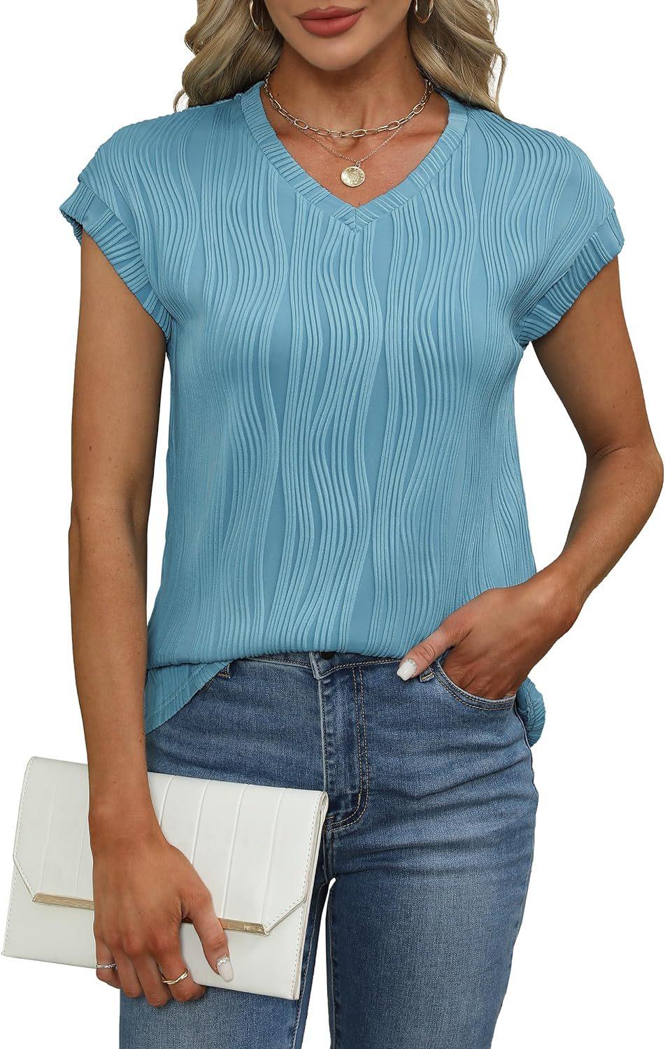 Camiseta holgada de manga corta con cuello en V, color liso, para verano de 2024, para comercio exterior transfronterizo entre Europa y América de Amazon Independent Station