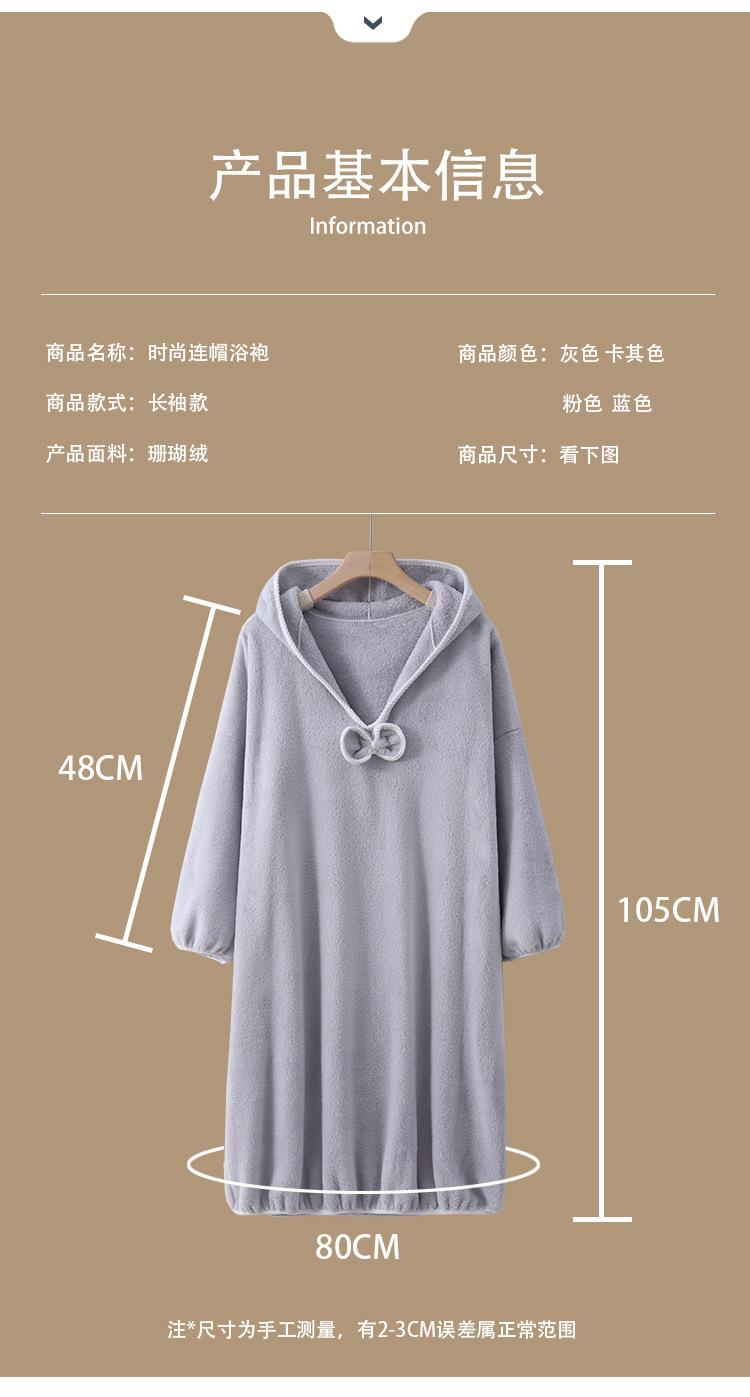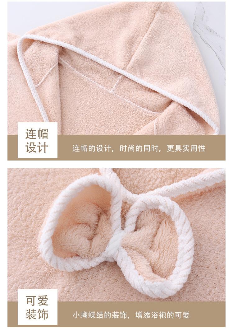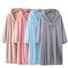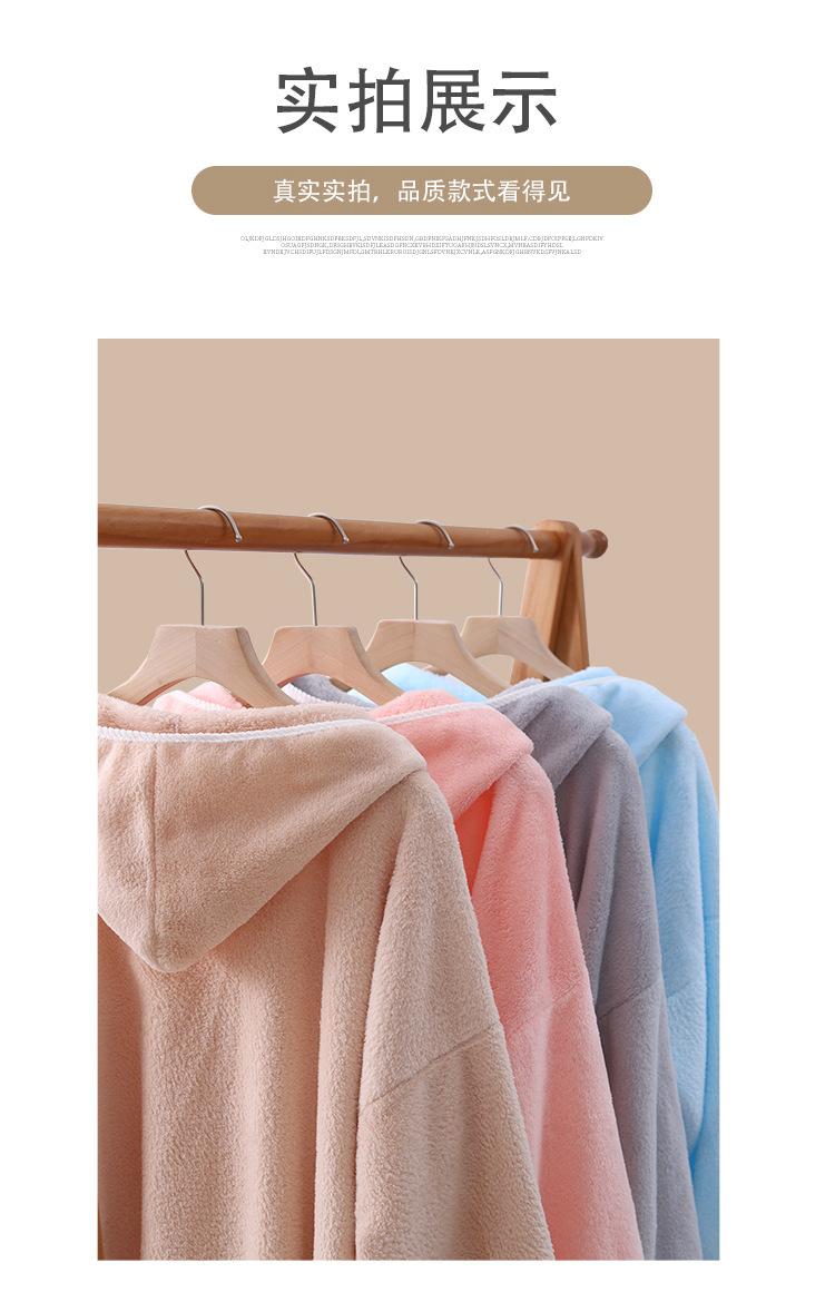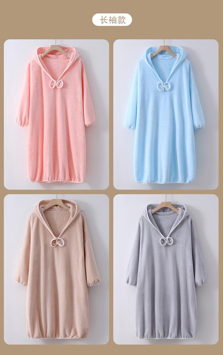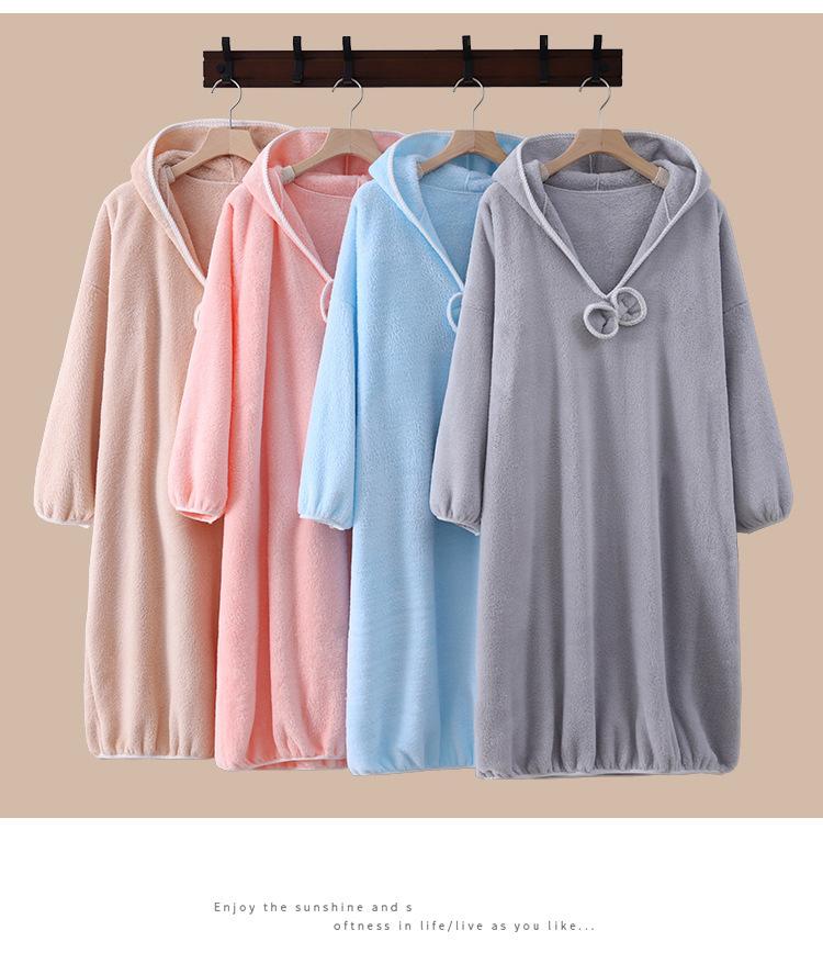 Bata de Noche de Invierno de Largo Medio para Casa de Terciopelo Coral para Mujer Absorbente de Agua Espesada para el Hogar con Capucha de Manga Larga Falda de Baño al por Mayor
