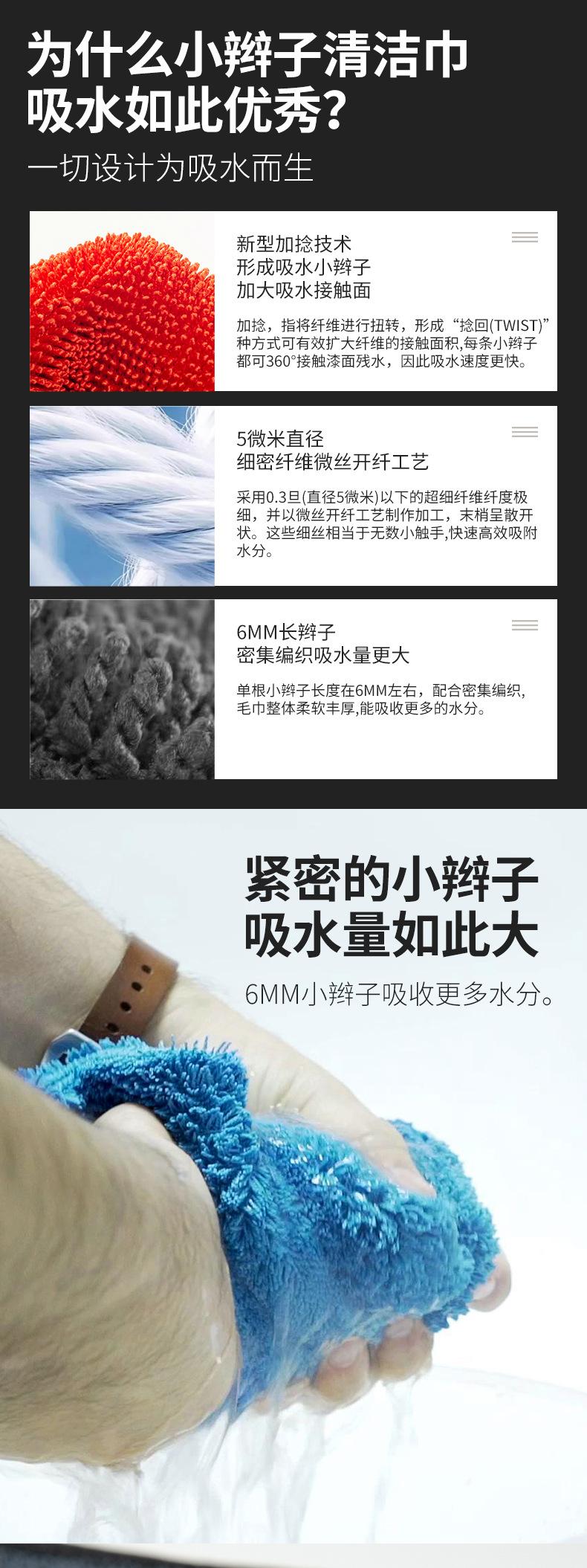 Toalla trenzada de microfibra Toalla para lavado de autos Paño para lavado de autos Toalla absorbente de un solo lado sin costuras Toalla recolectora de agua