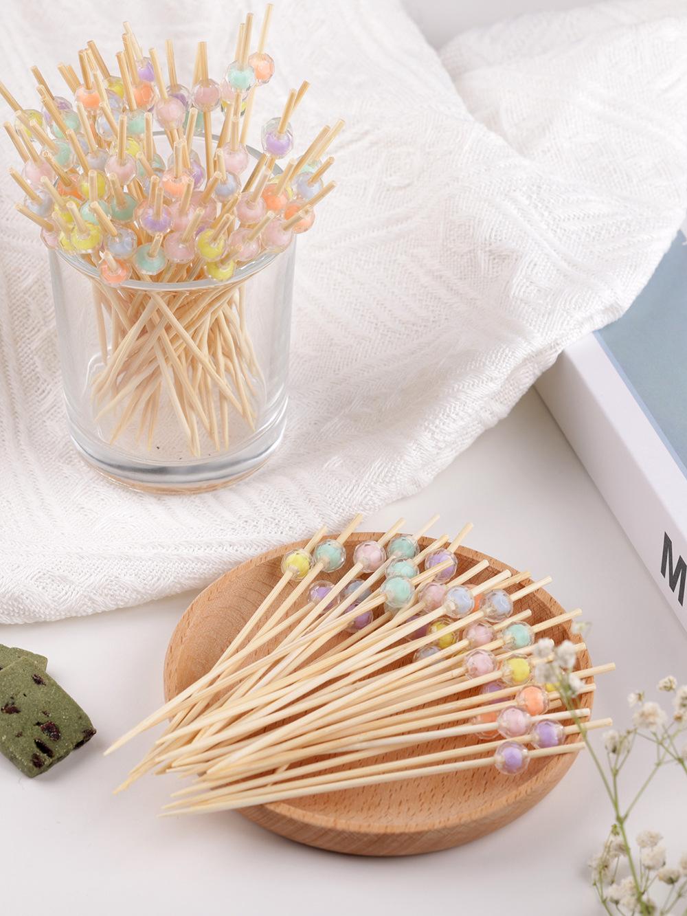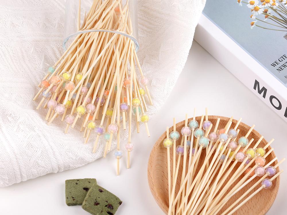 100 palillos de bambú desechables de 12 cm, tenedores de fruta coloridos para sándwiches, ktv, bares, pasteles, postres, aperitivos, Kt