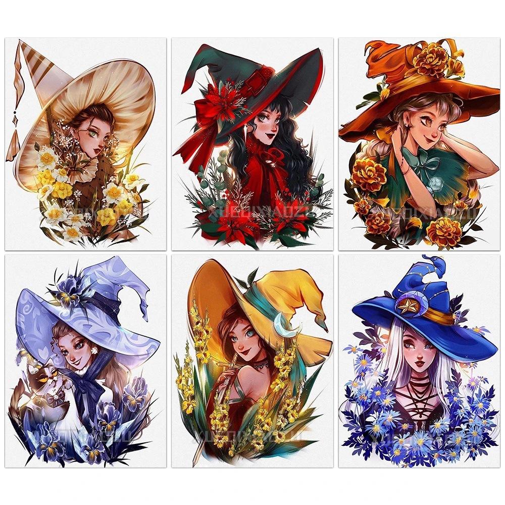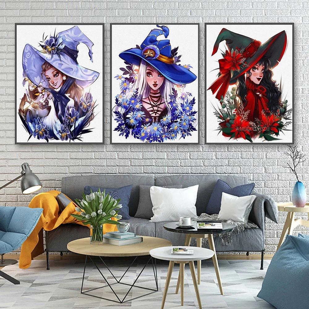 Pintura de diamantes retrato de bruja de dibujos animados punto de cruz bordado de diamantes traje de mosaico hecho a mano DIY regalo suministro de fabricantes