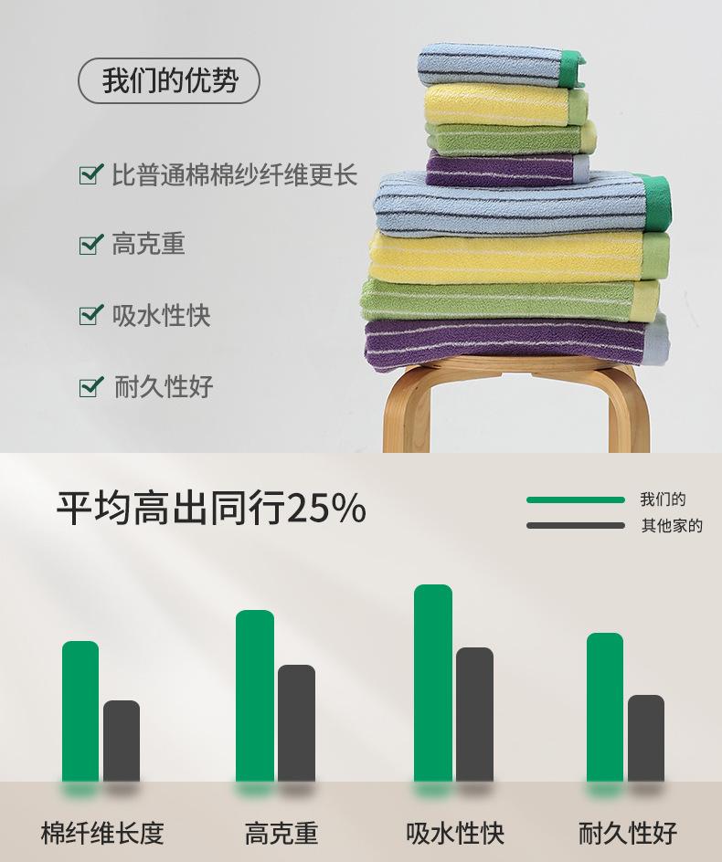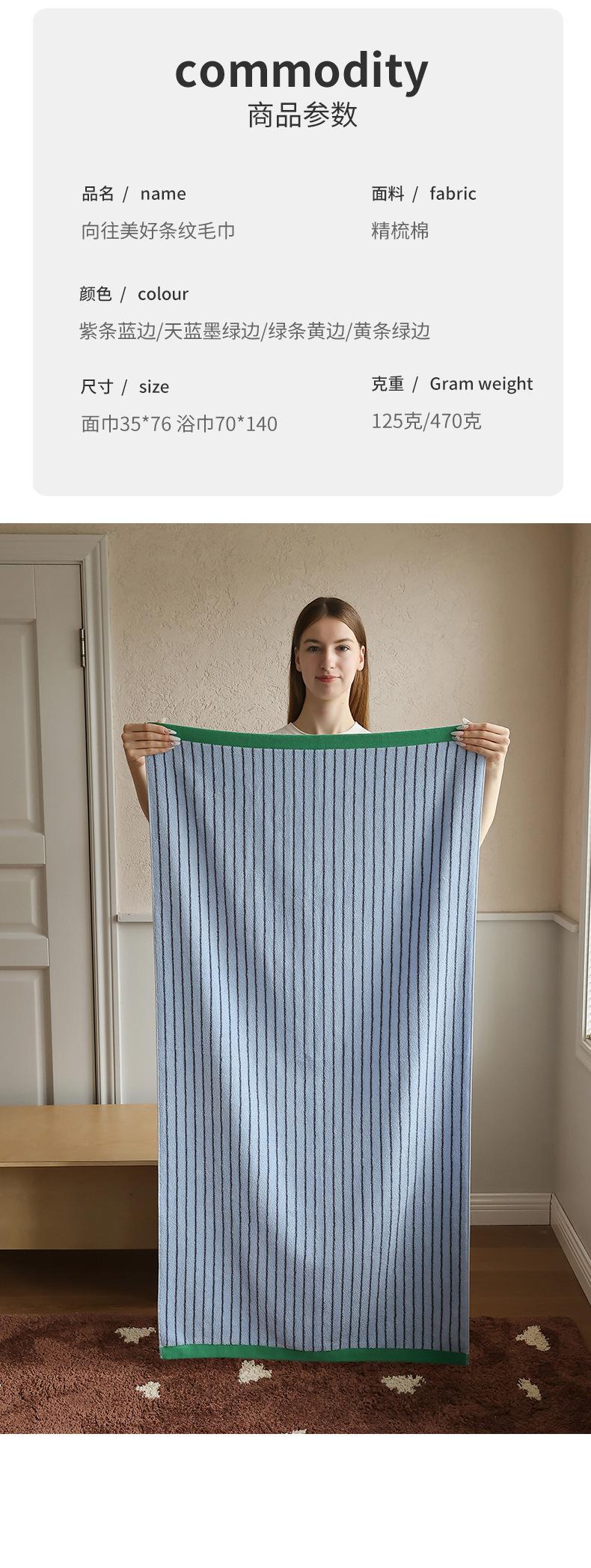 Toalla de algodón peinado de nueva generación con rayas simples, color liso, de algodón puro, clase A, de alta densidad, absorbente y agradable para la piel.