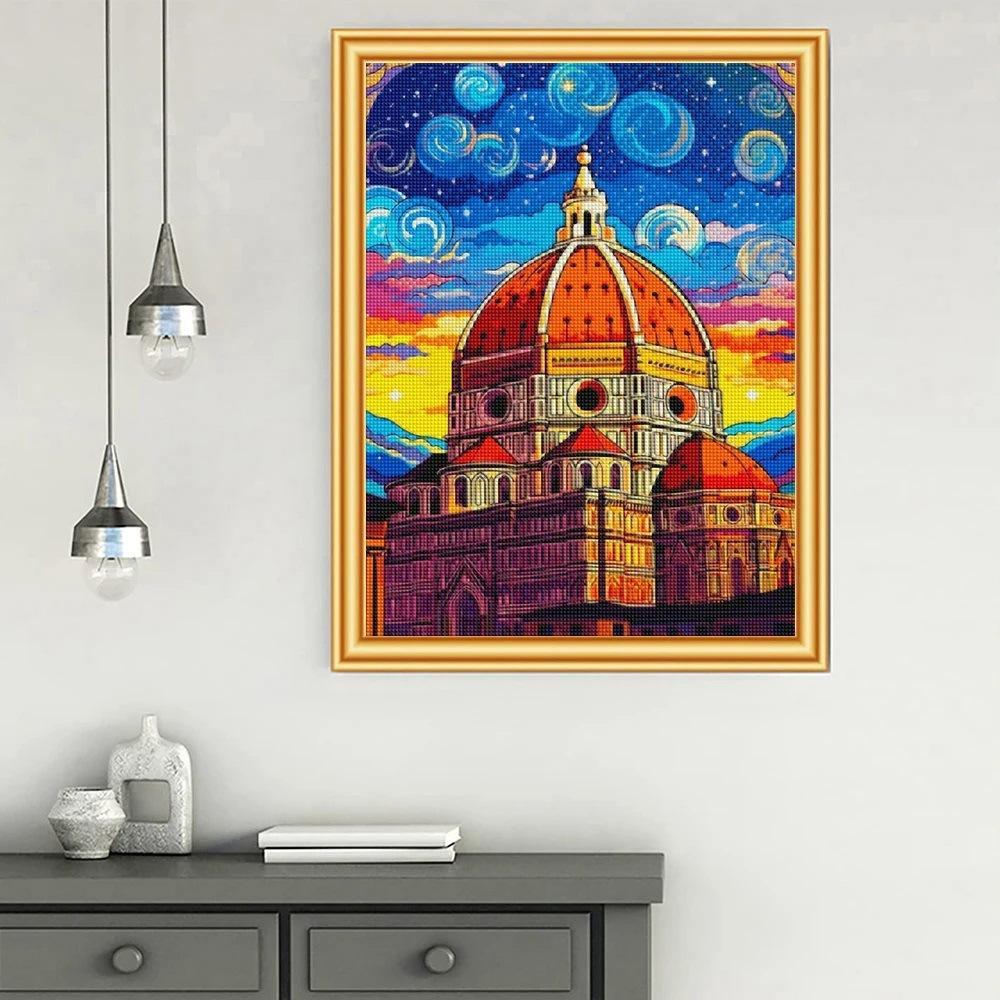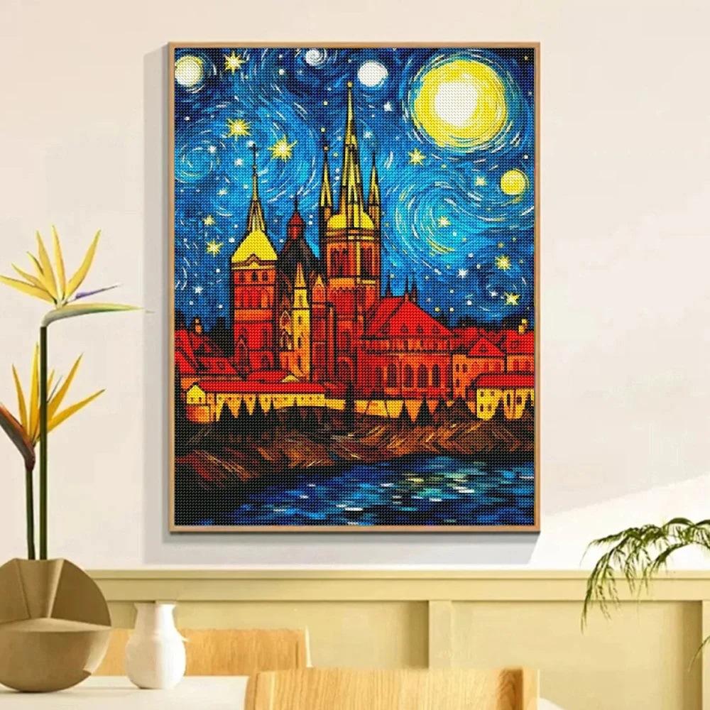 Nueva pintura de diamante 5D de Amazon, "Edificio de Estrellas de Ensueño", hecha a mano, para decorar la entrada de la sala de estar.