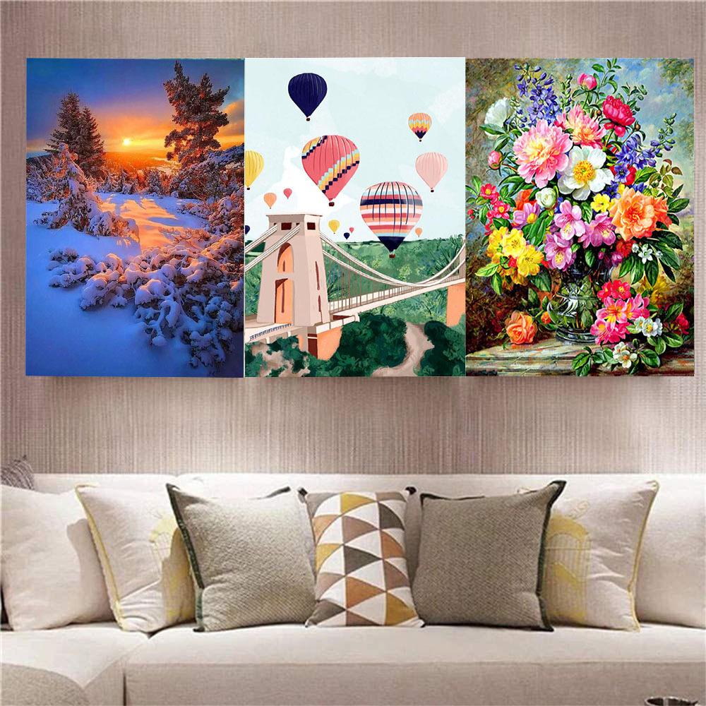 Pintura de diamante 5D DIY, paisaje de flores con diamantes, pegatinas de diamantes hechas a mano, pintura decorativa para sala de estar, dormitorio y pasillo, pintura colgante
