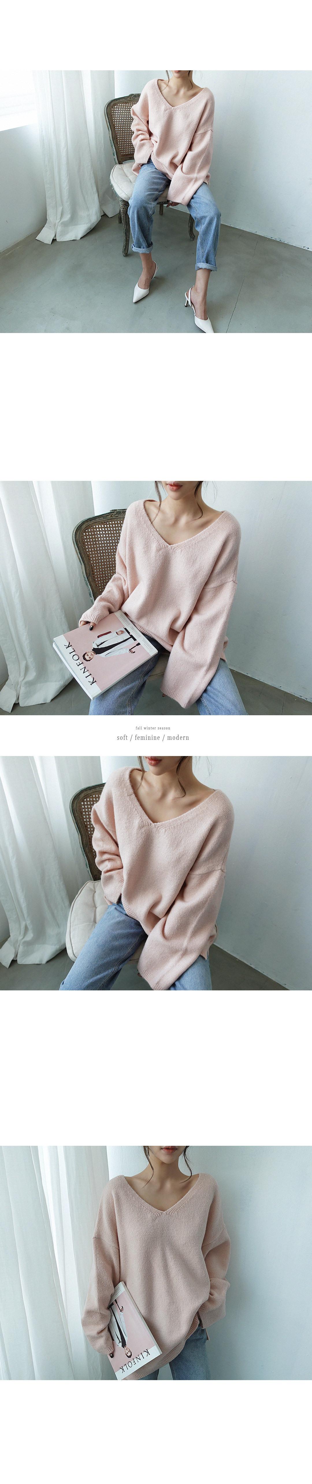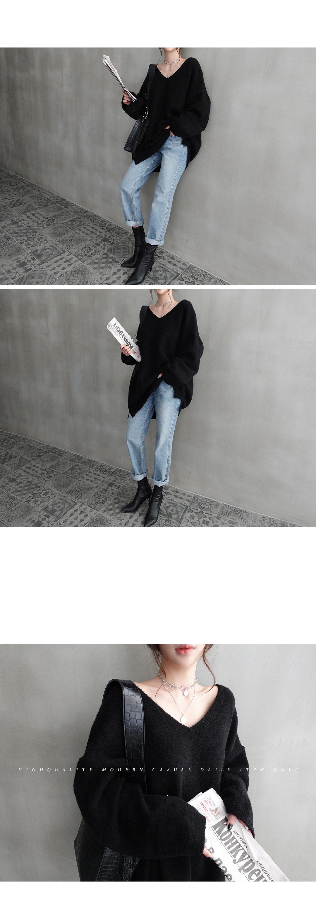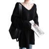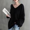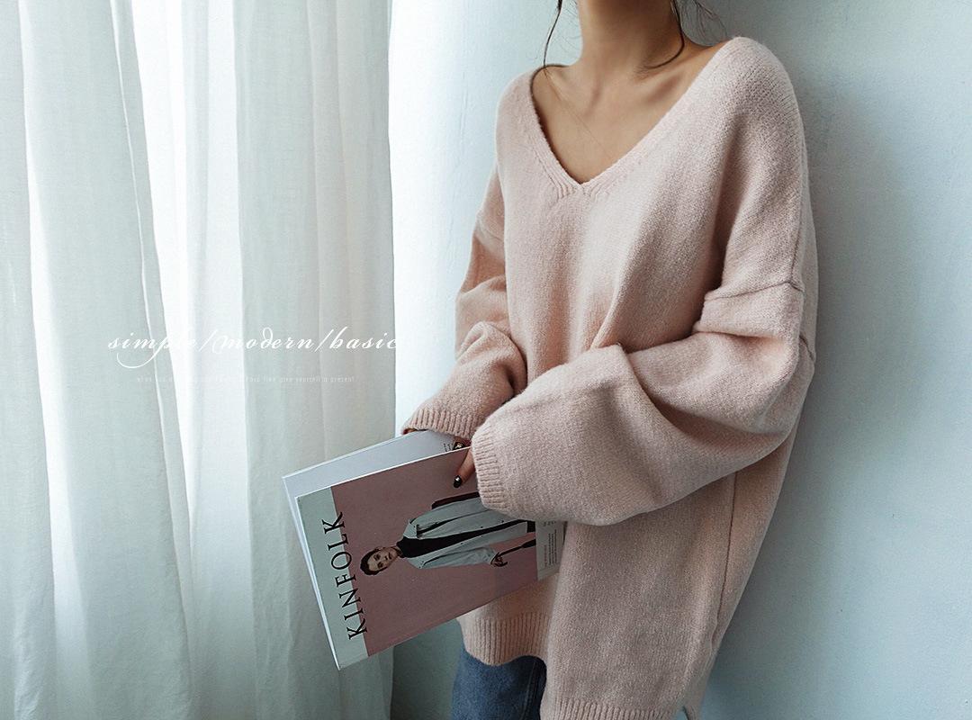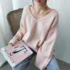 Estilo Otoño e Invierno 2025 Camiseta Básica de Punto con Cuello en V para que las Chicas Gorditas Luzcan Delgadas y con Menos Edad Camiseta Suéter de Manga Larga