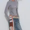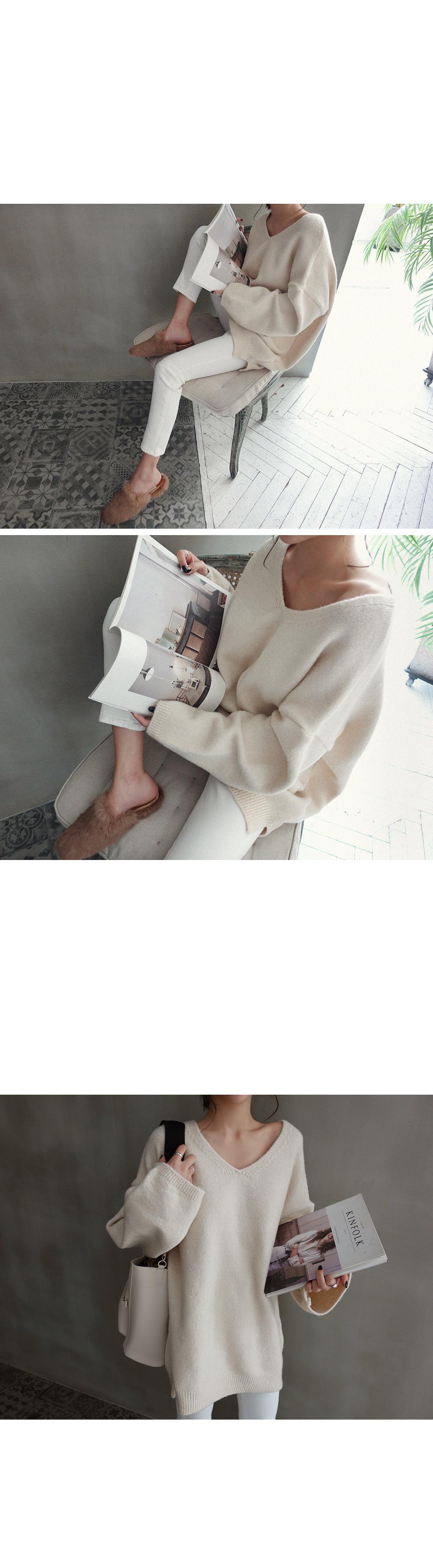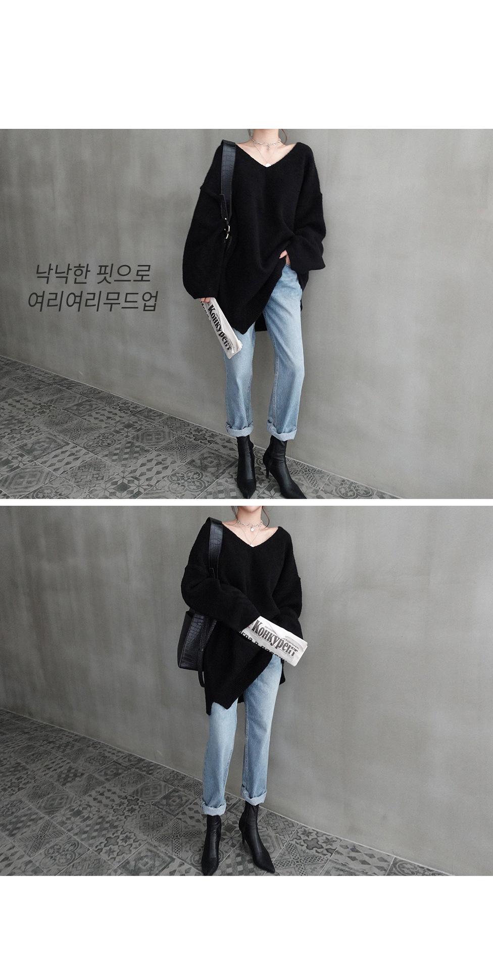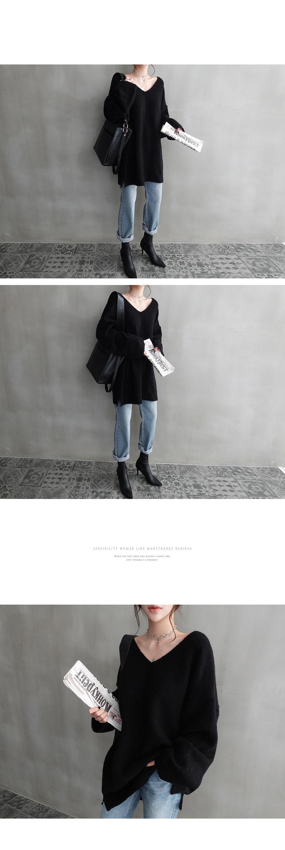 Estilo Otoño e Invierno 2025 Camiseta Básica de Punto con Cuello en V para que las Chicas Gorditas Luzcan Delgadas y con Menos Edad Camiseta Suéter de Manga Larga