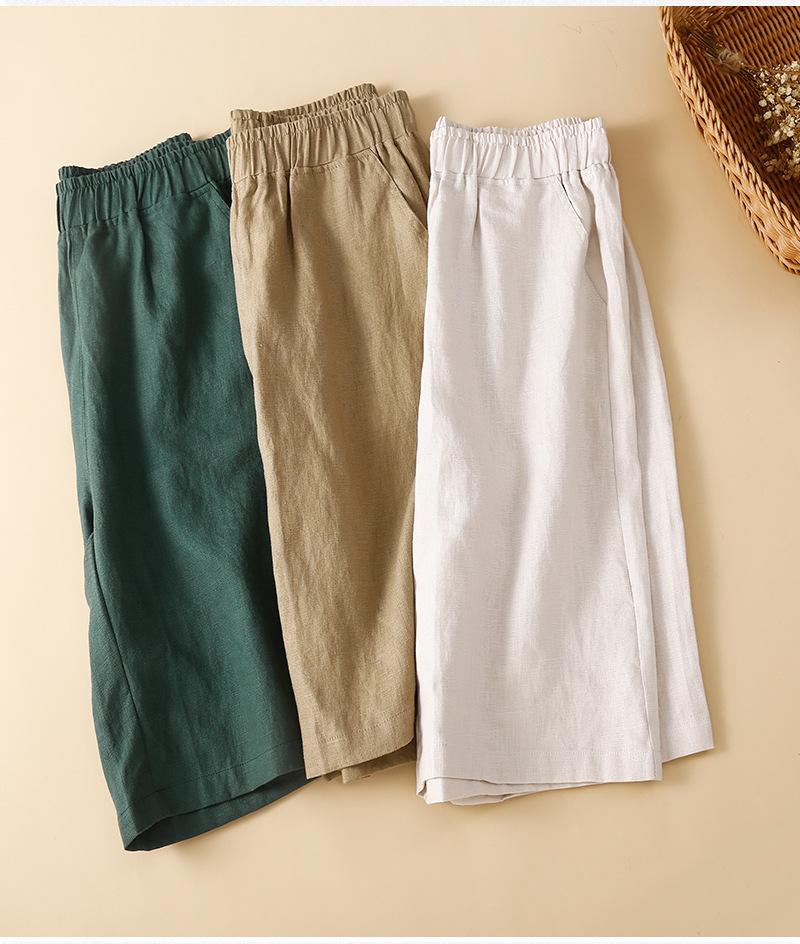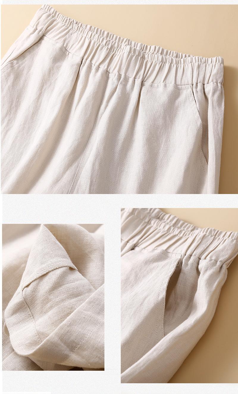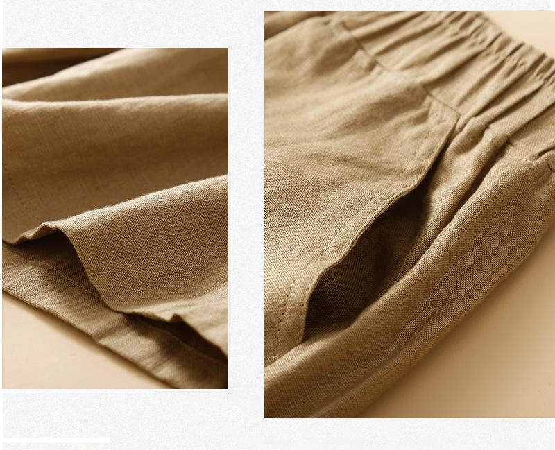 Pantalones casuales de cintura alta, holgados, rectos, de algodón y lino, de verano 2024, ajustados y elásticos, para mujer