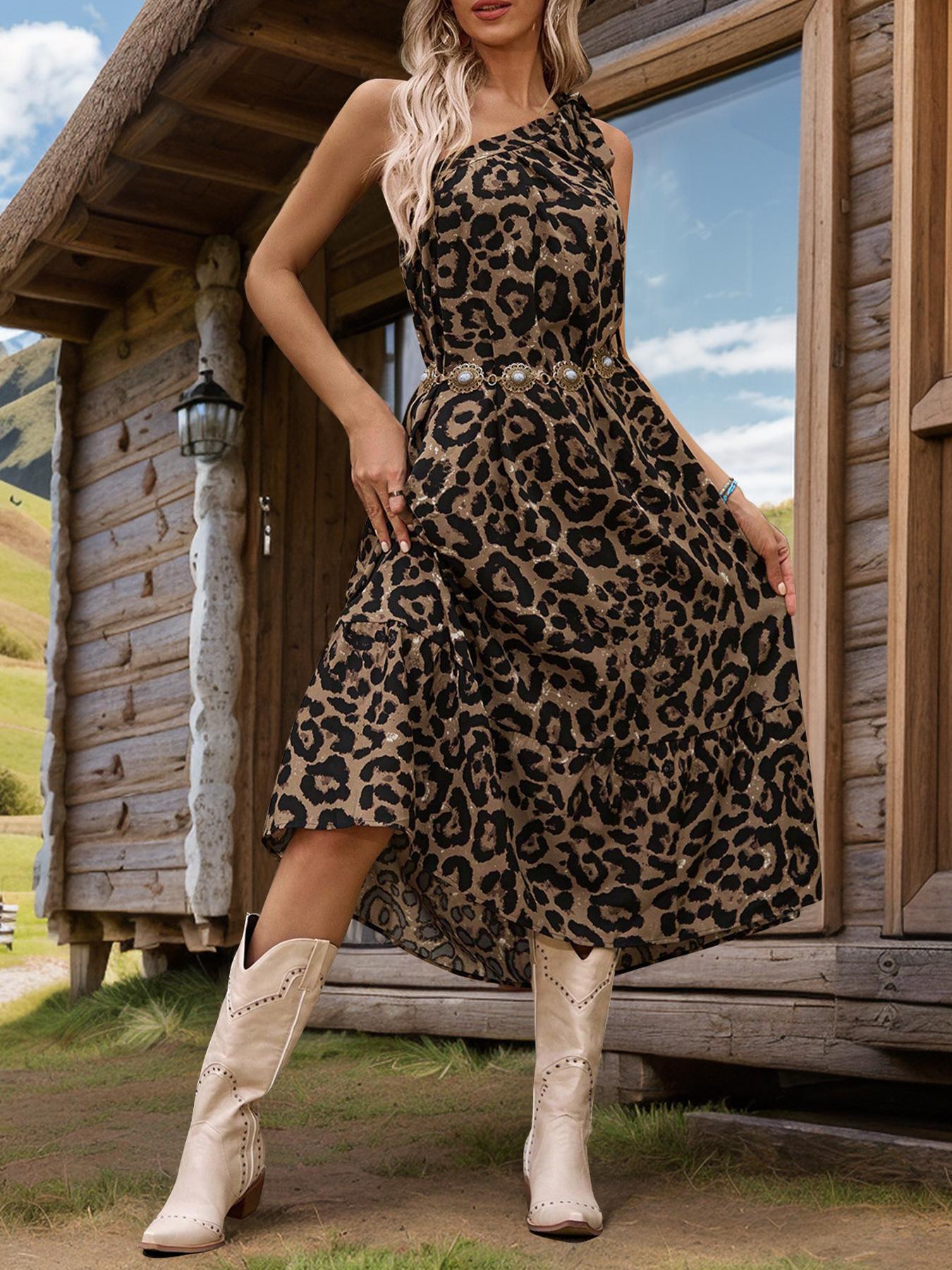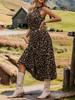 Comercio exterior transfronterizo de Amazon Europa y Estados Unidos Una falda 2025 nueva falda de verano con estampado de leopardo y vestido con cordones en los hombros