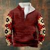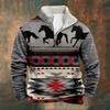 Camisa informal con cuello y media cremallera para hombre, nueva camisa con estampado azteca de estilo transfronterizo europeo y americano