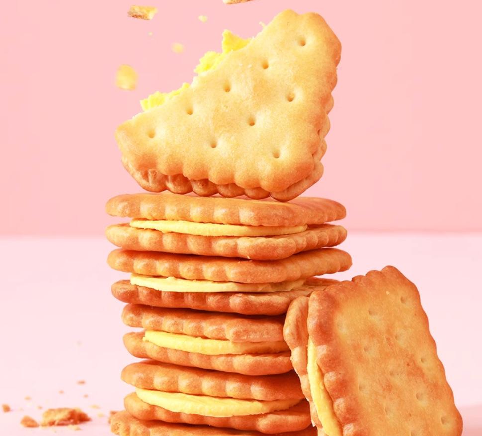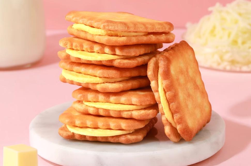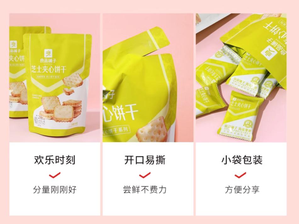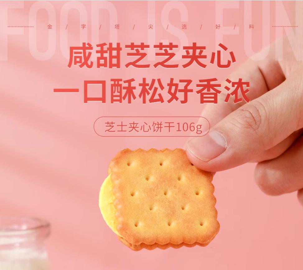 Galletas de queso tipo sándwich de la tienda Liangpin, 106 g, en bolsa, saladas, ideales para la oficina de celebridades de Internet, empaquetadas individualmente en un paquete pequeño.