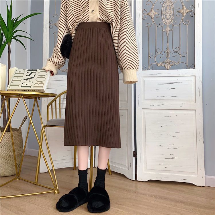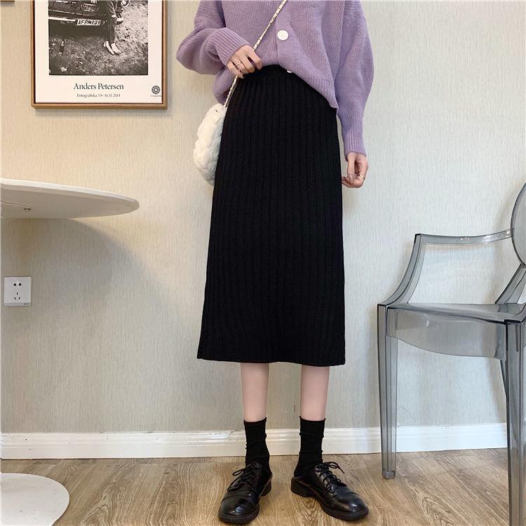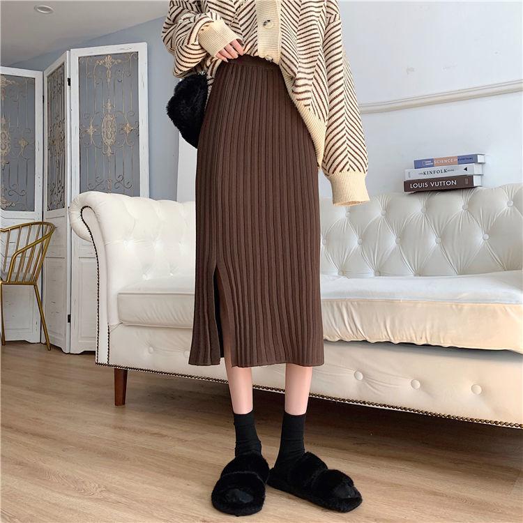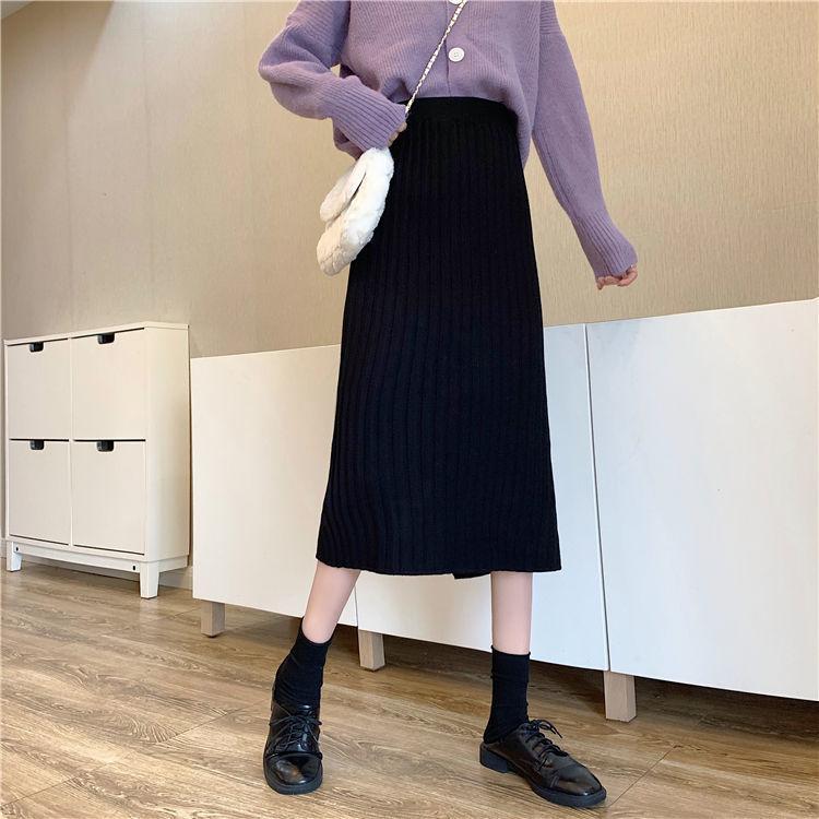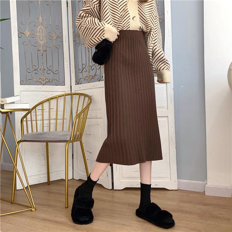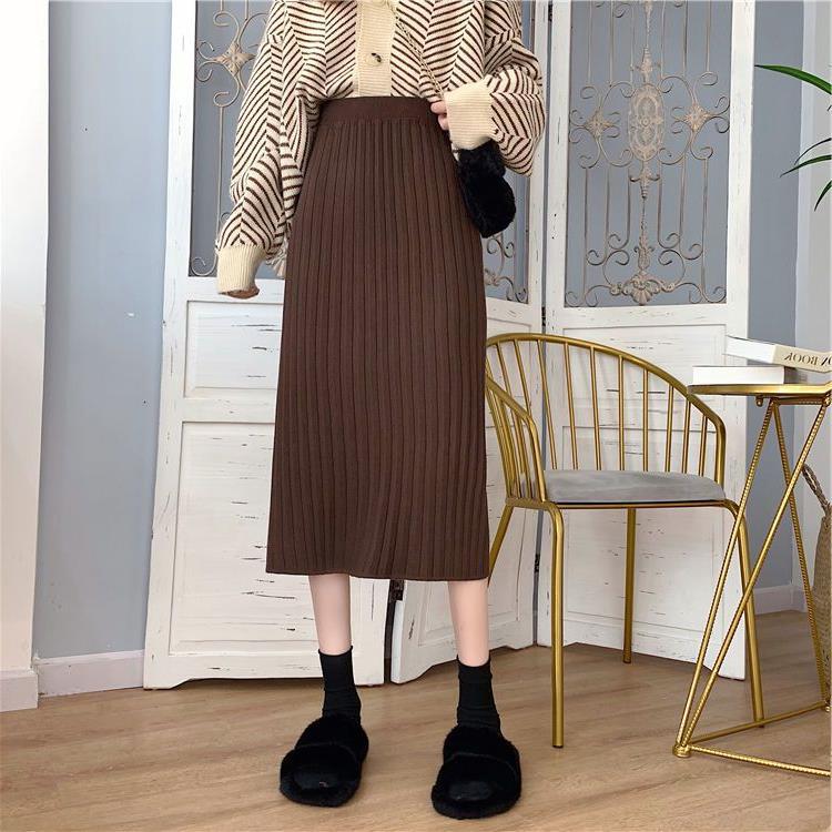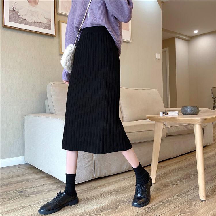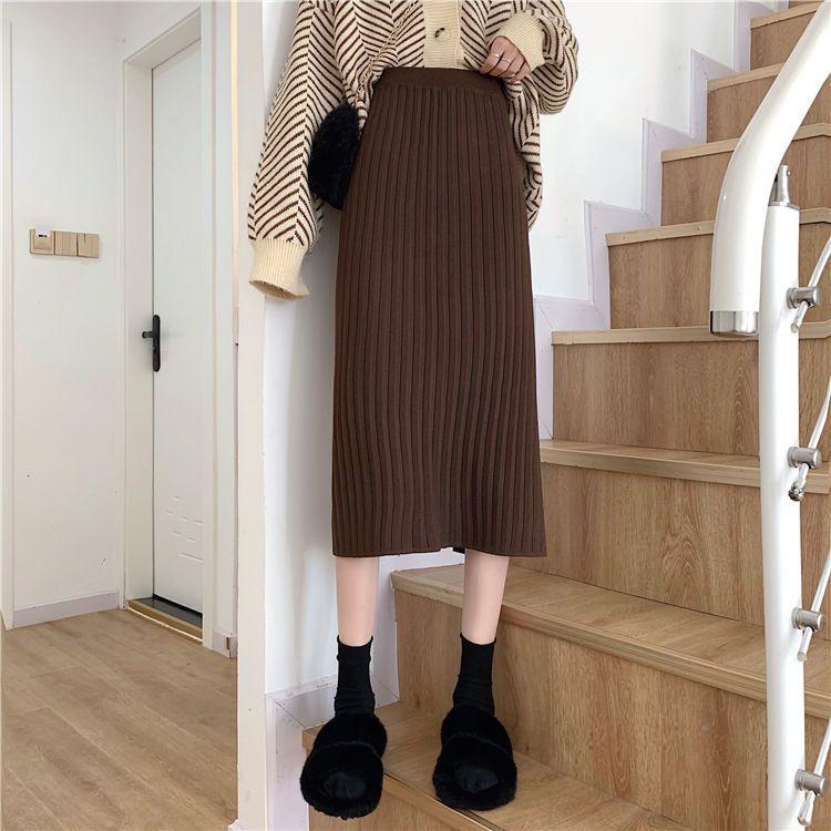 Falda de punto de longitud media para mujer, estilo coreano, otoño e invierno, 2022, nueva, de cintura alta, adelgazante, de un solo paso