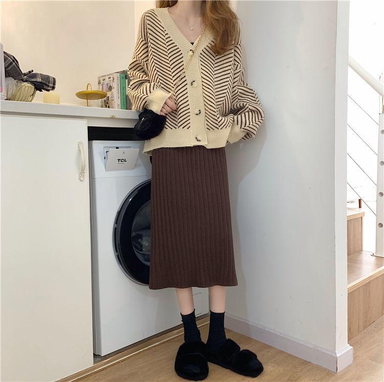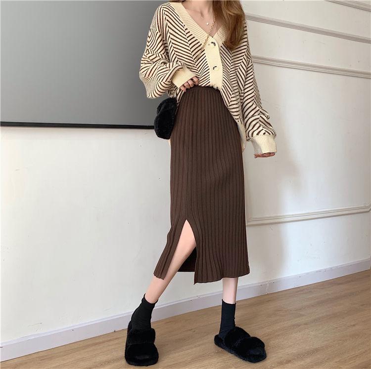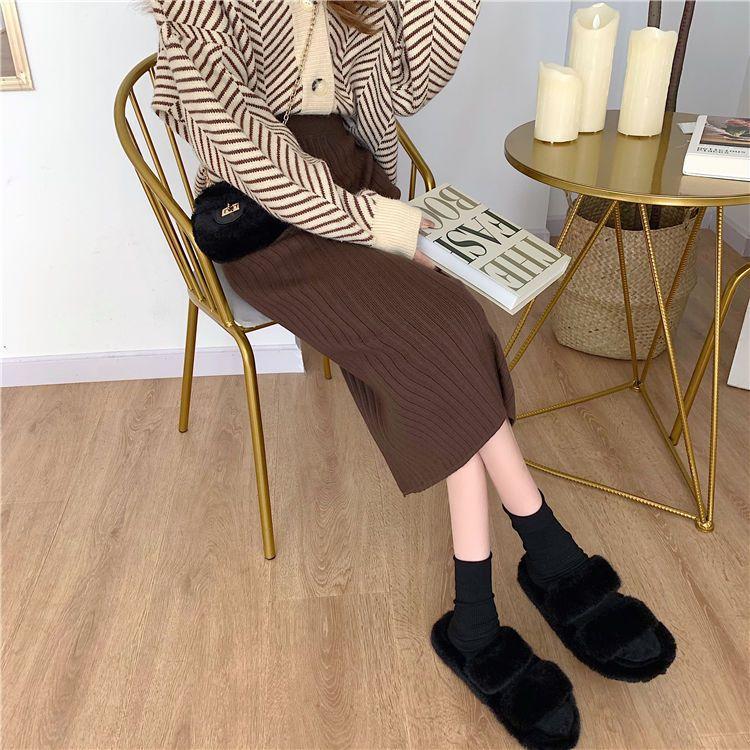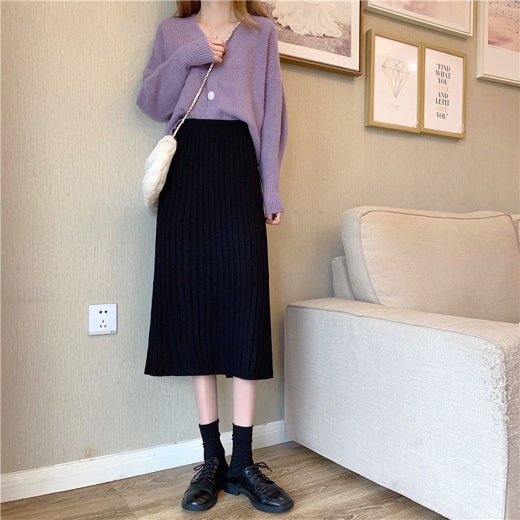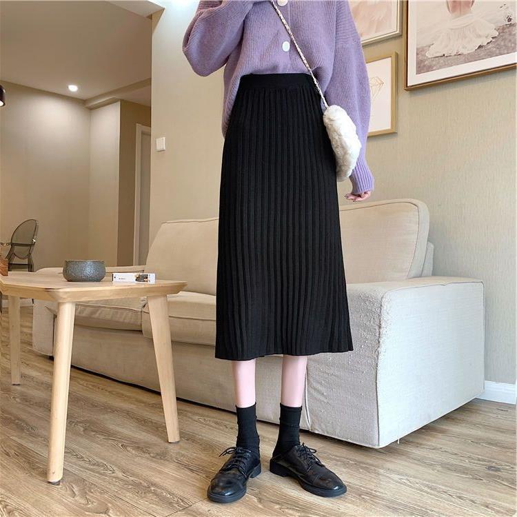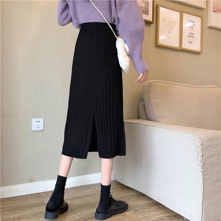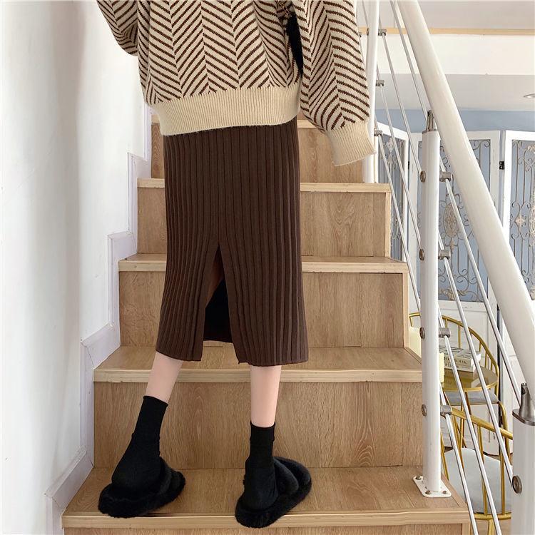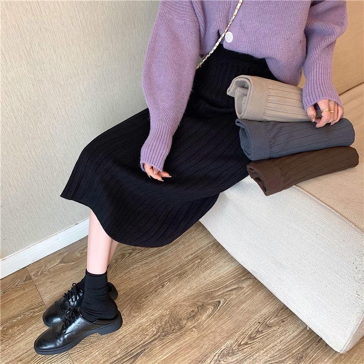 Falda de punto de longitud media para mujer, estilo coreano, otoño e invierno, 2022, nueva, de cintura alta, adelgazante, de un solo paso