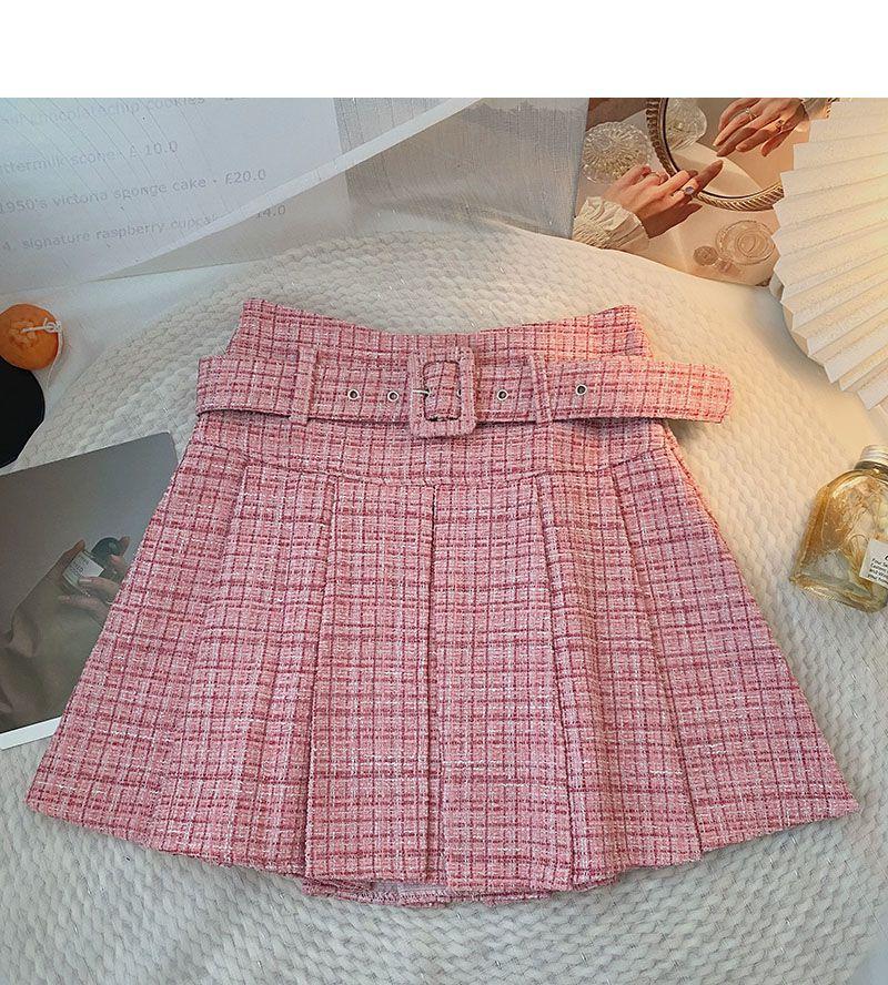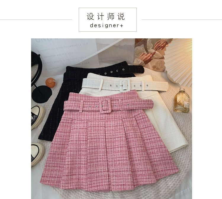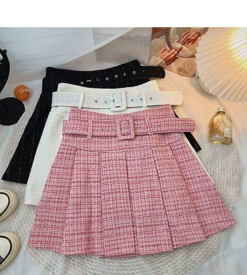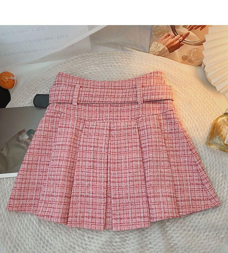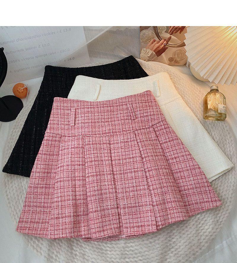 Falda plisada rosa estilo Chanel para mujer, nueva de principios de otoño, estilo coreano, adelgazante, combinable con todo, anti-transparencias, cintura alta, falda línea A