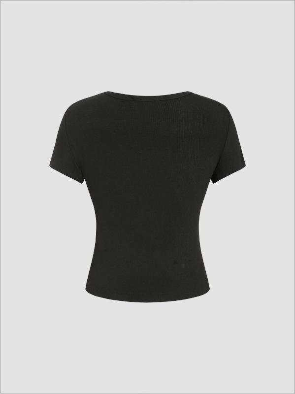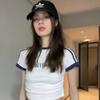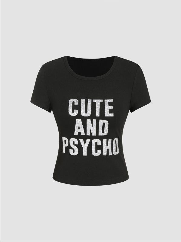 Camiseta de manga corta con estampado retro de letras transfronterizas europeas y americanas, verano 2024, top corto ajustado y adelgazante, ropa para mujer