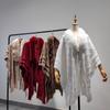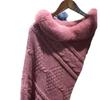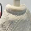 2025 Capa de Punto con Cuello de Piel Sintética de Color Puro para Mujer Otoño e Invierno Nuevo Retro Suelto Súper Grueso Suéter Pulóver Chal para Mujer